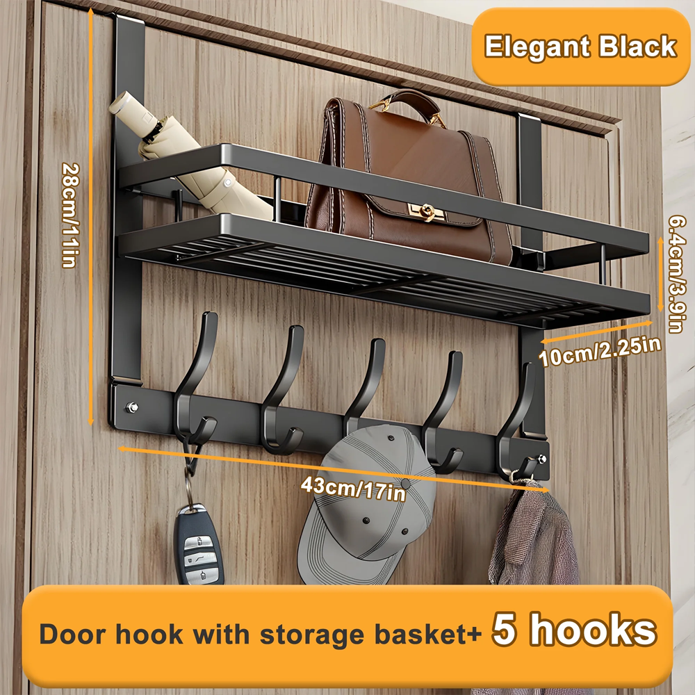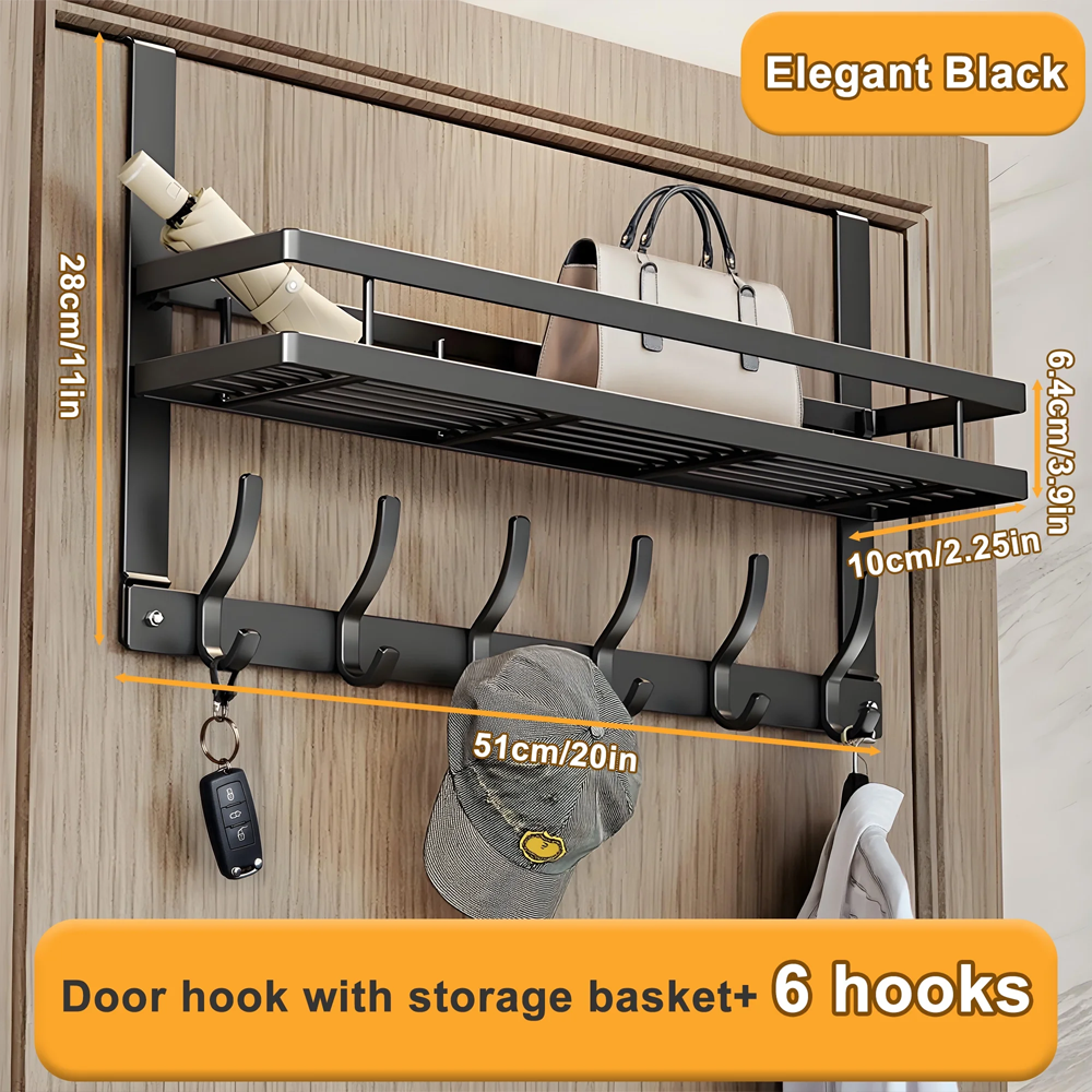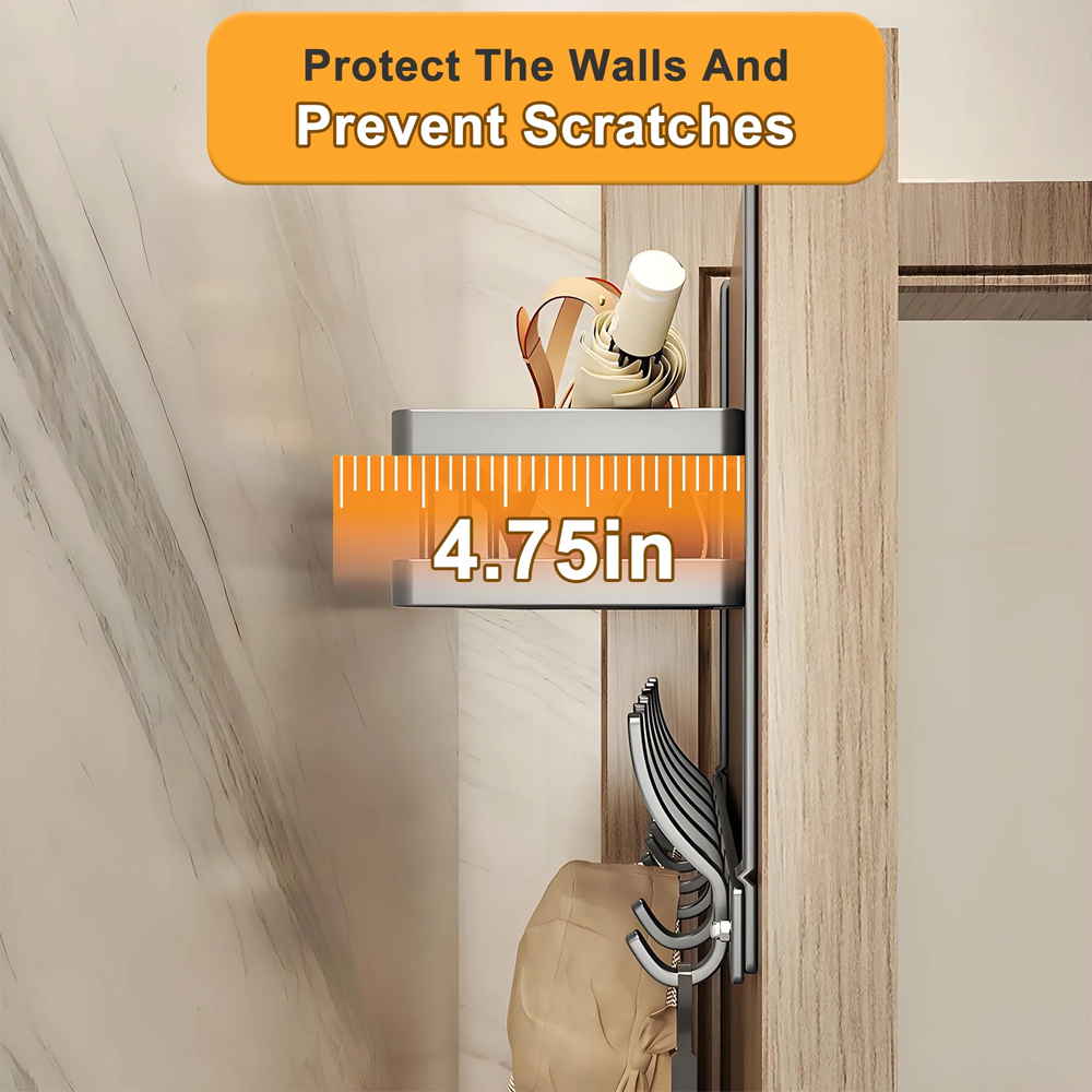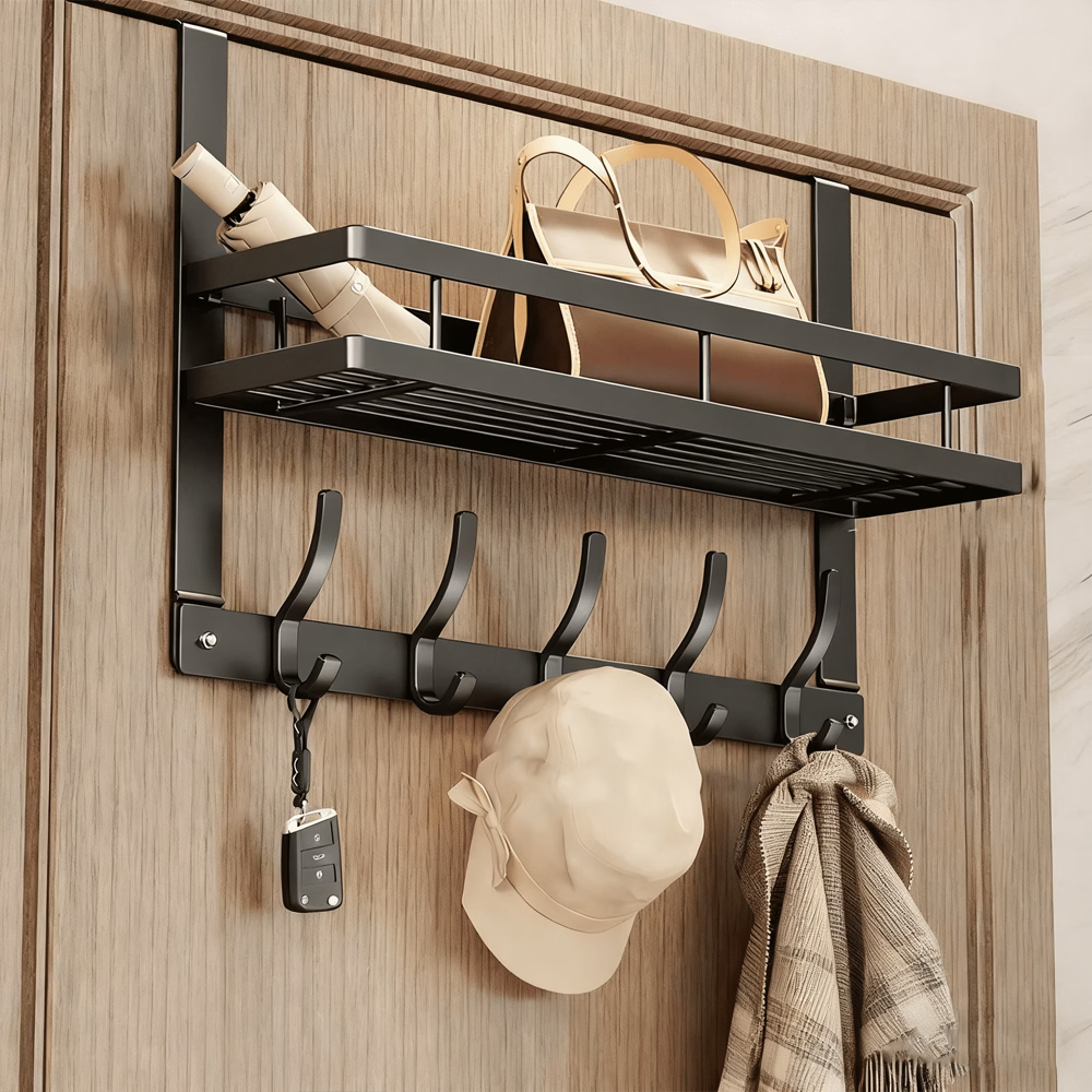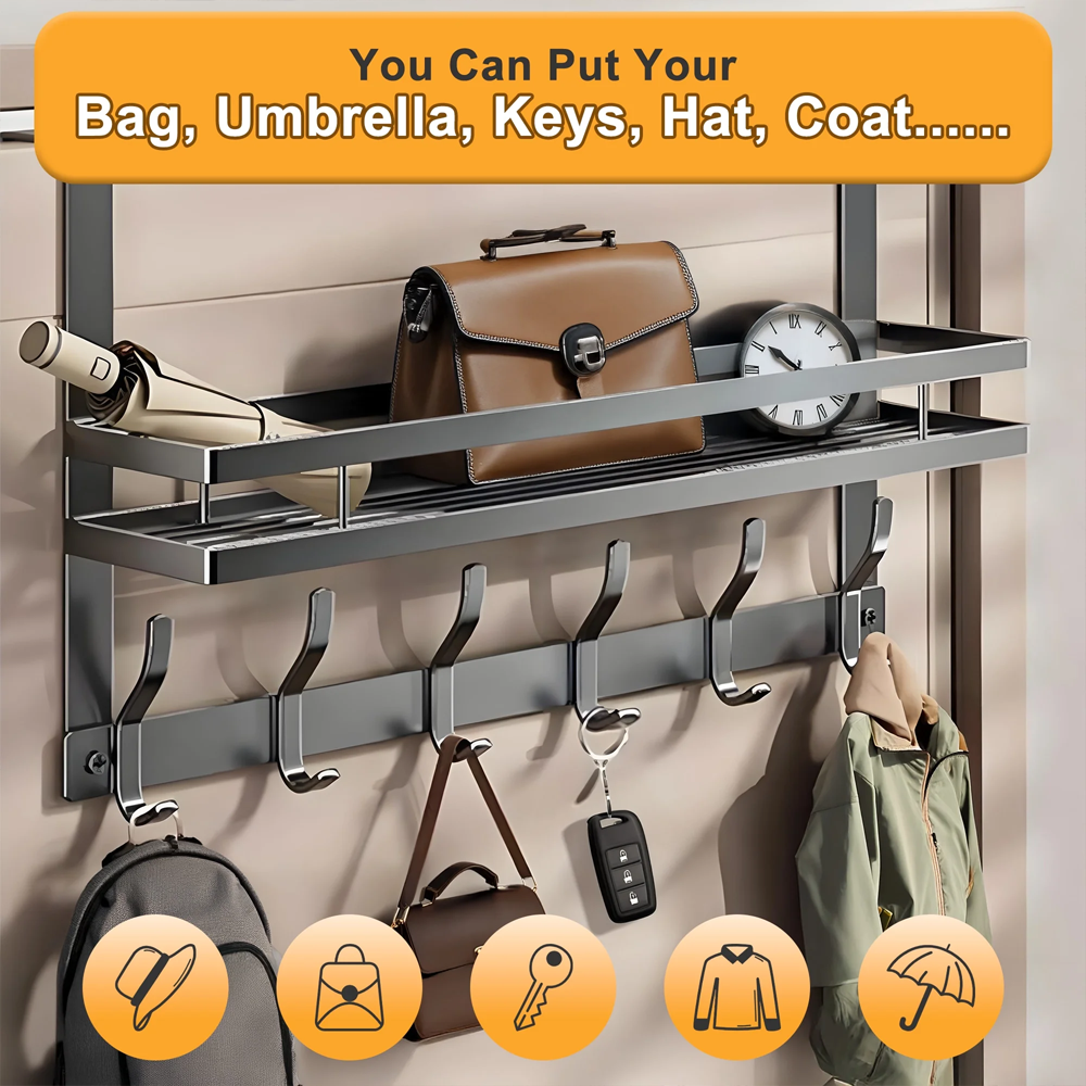 حوّل مساحة خلف الباب إلى منطقة تخزين منظمة وراقية مع علاقة الباب المعدنية متعددة الاستخدامات المزودة برف علوي عملي وخطّافات قوية لتعليق الحقائب، المفاتيح، القبعات، المعاطف،傘، والسماعات وغيرها.