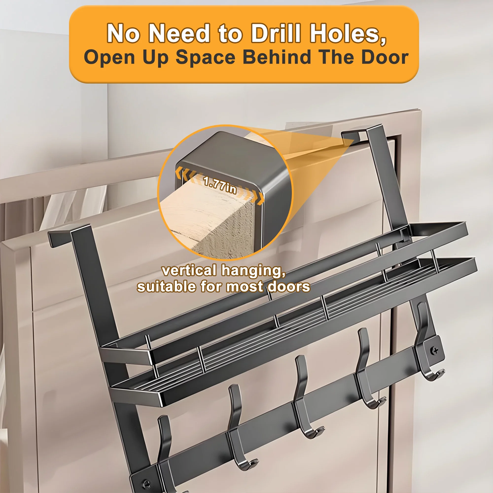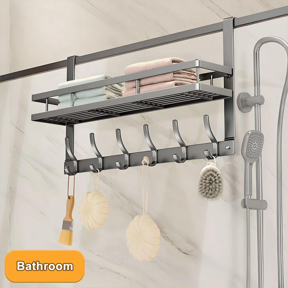 علاقة باب متعددة الاستخدامات مع رف تخزين علوي – بدون حفر – تصميم معدني فاخر