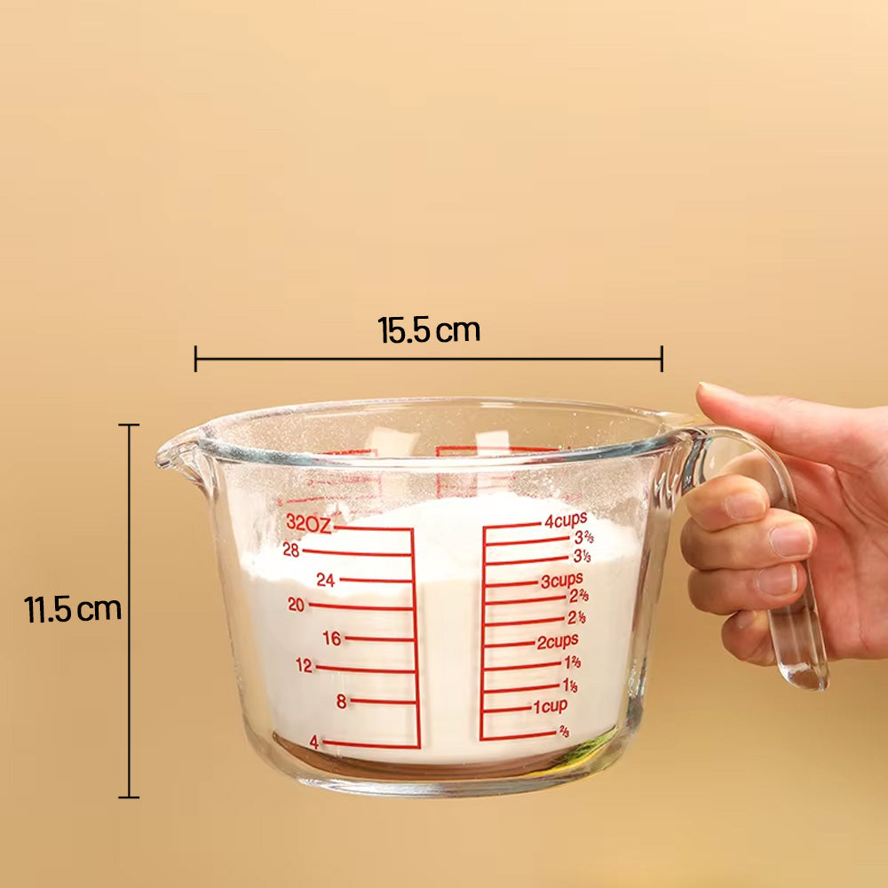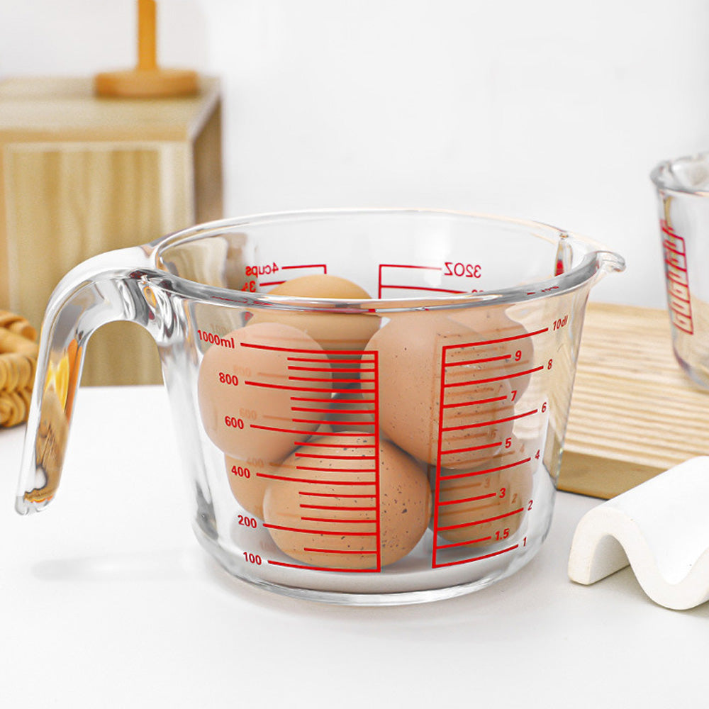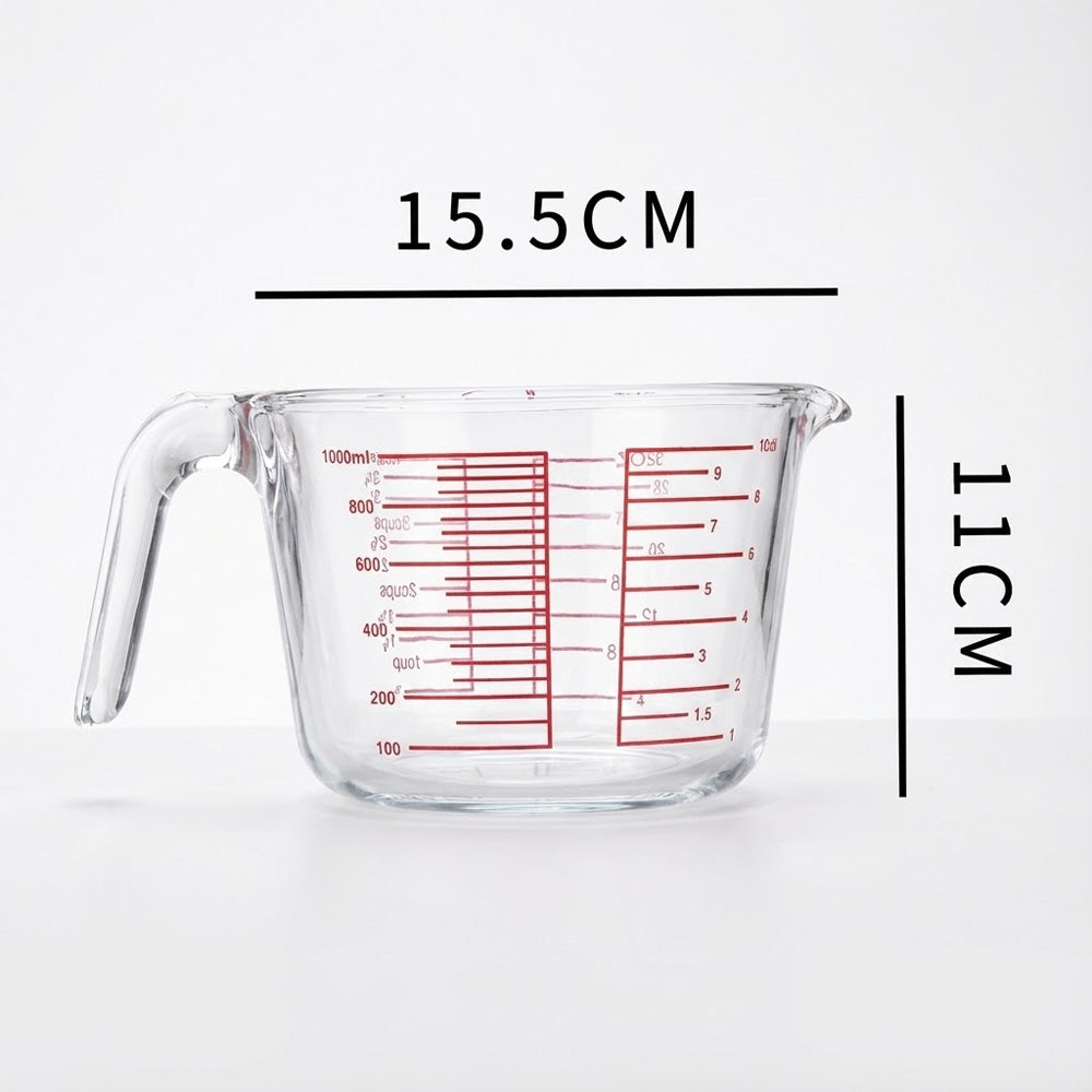يتميز بقياسات حمراء واضحة مطبوعة بالملليلتر والكوب والأونصة لسهولة القراءة. يضمن المقبض المتين قبضة مريحة، بينما تسمح فوهة الصب بسكب سلس دون أي تنقيط. مثالي لقياس السوائل مثل الحليب والزيت والمرق والصلصات، بالإضافة إلى المكونات الجافة.