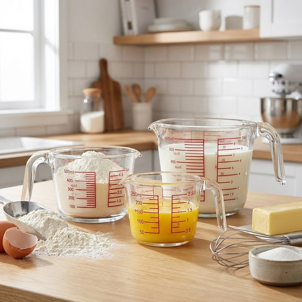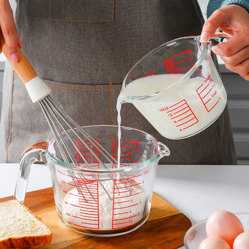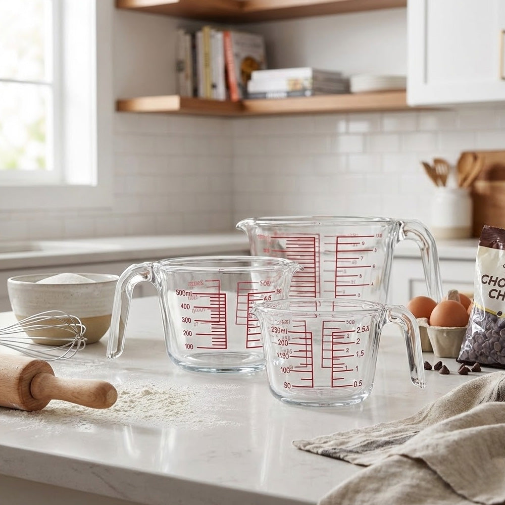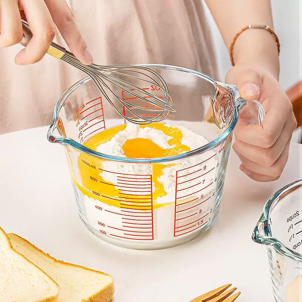 يتميز بقياسات حمراء واضحة مطبوعة بالملليلتر والكوب والأونصة لسهولة القراءة. يضمن المقبض المتين قبضة مريحة، بينما تسمح فوهة الصب بسكب سلس دون أي تنقيط. مثالي لقياس السوائل مثل الحليب والزيت والمرق والصلصات، بالإضافة إلى المكونات الجافة.