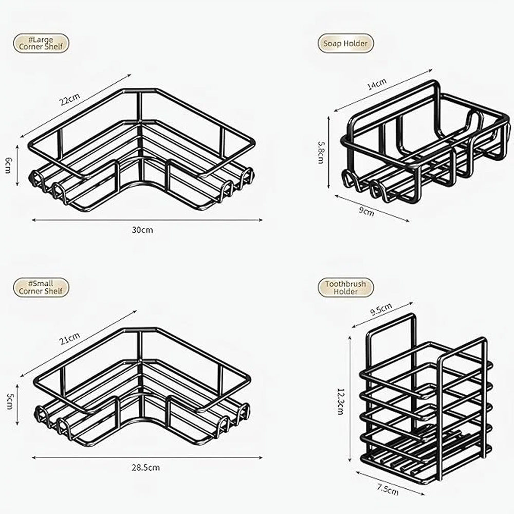 استفد من مساحة حمامك مع طقم تنظيم الحمام هذا المكون من 4 قطع، المصمم لتخزين متين وأنيق دون الحاجة إلى المثقاب.