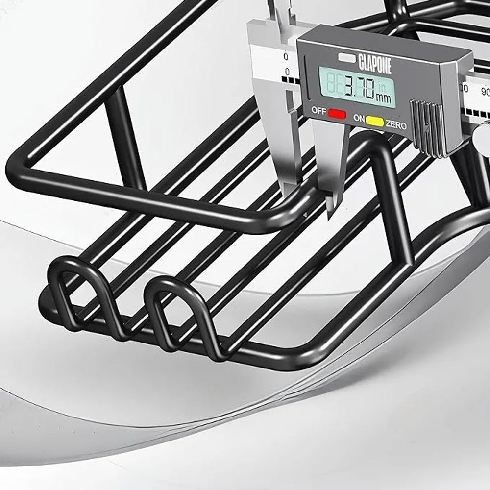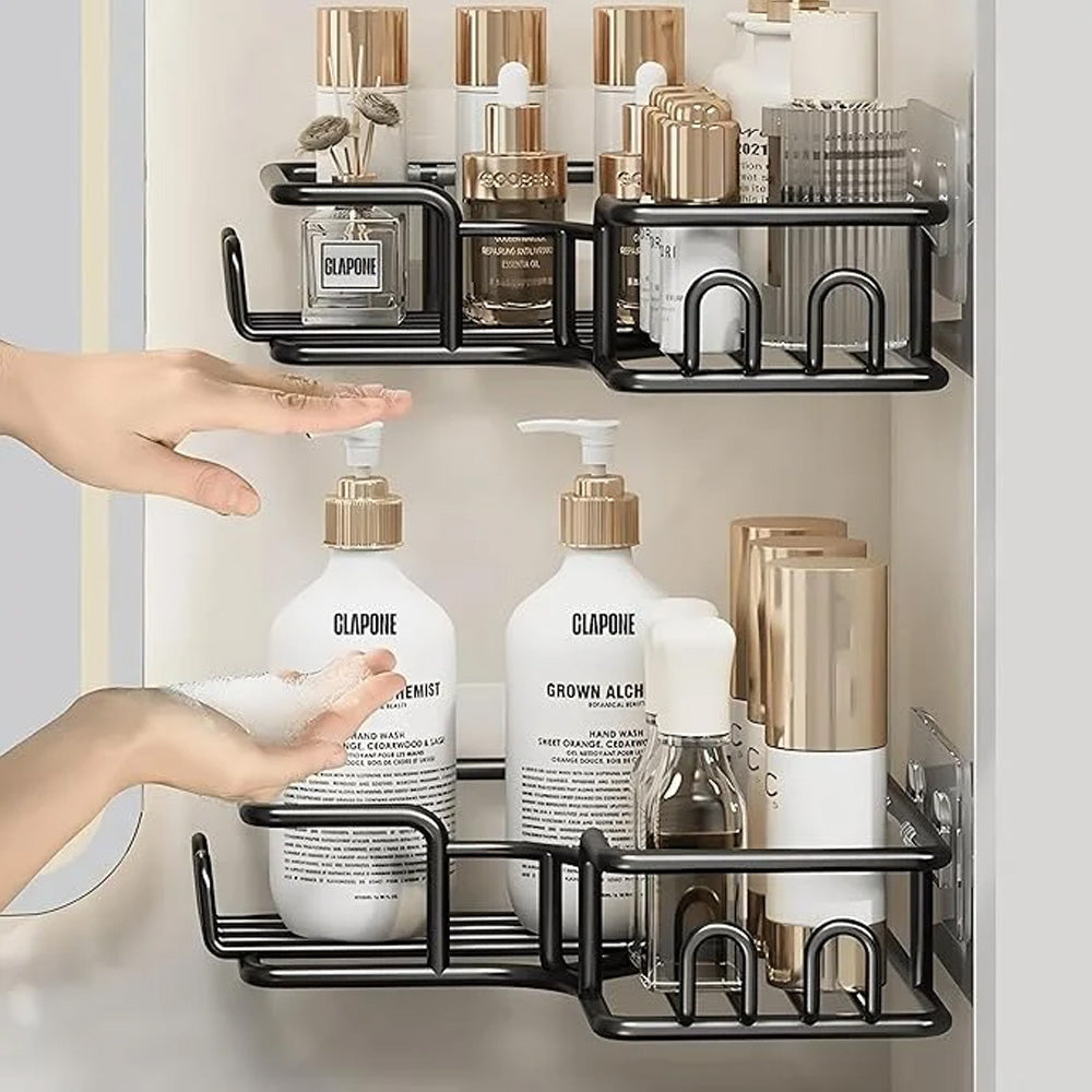 بتصميمه بإطار معدني أسود متين، وحواجز مرتفعة، وحواف مستديرة ناعمة، وخطافات تمديد عملية، تحافظ هذه الرفوف على مستلزماتك الأساسية منظمة ومرتبة وسهلة الوصول.