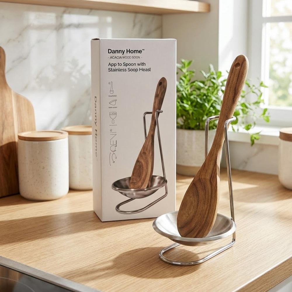 أضف لمسة من الأناقة الطبيعية إلى مطبخك مع هذه الملعقة الخشبية المصنوعة من خشب الأكاسيا، والمُرفقة بحامل أنيق من الفولاذ المقاوم للصدأ. صُنعت الملعقة من خشب الأكاسيا المتين والآمن للاستخدام مع الطعام، وهي لطيفة على أواني الطهي ومريحة في الإمساك. يحافظ الحامل المصنوع من الفولاذ المقاوم للصدأ على نظافة سطح العمل من خلال منع تساقط السوائل، مع تثبيت الملعقة في وضع مستقيم وفي متناول اليد.