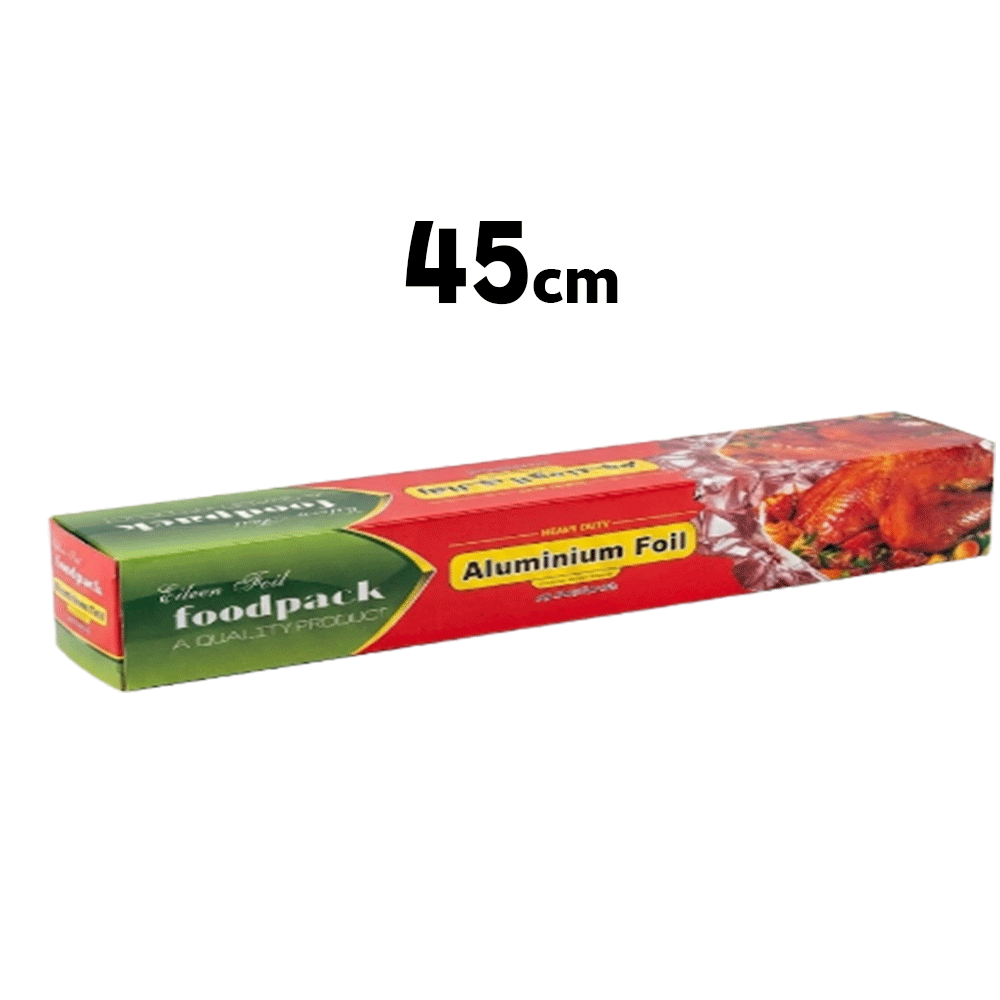 ورق ألومنيوم متوفر بعرض 45 سم  وطول 30 سم ، غالبًا ما يحتوي الكرتون على 24 لفة، ويتوفر بتغليف في علبة ملونة أو كيس بلاستيكي.
