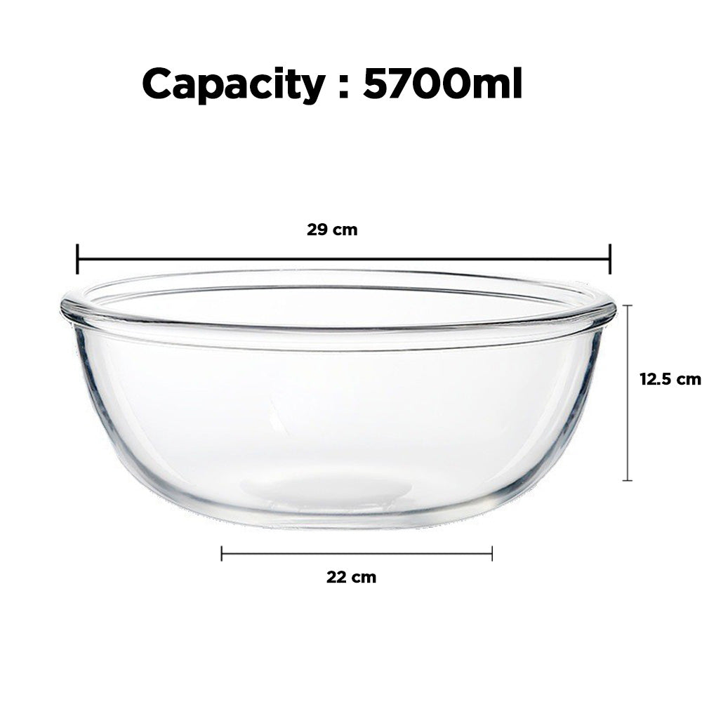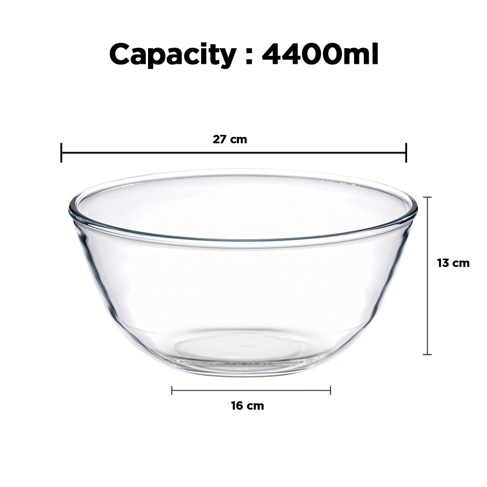 وعاء خلط زجاجي شفاف كبير (4.4 لتر / 5.7 لتر)