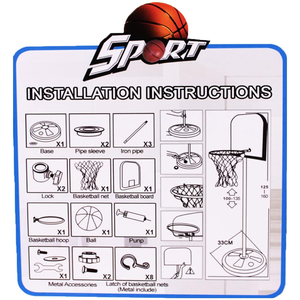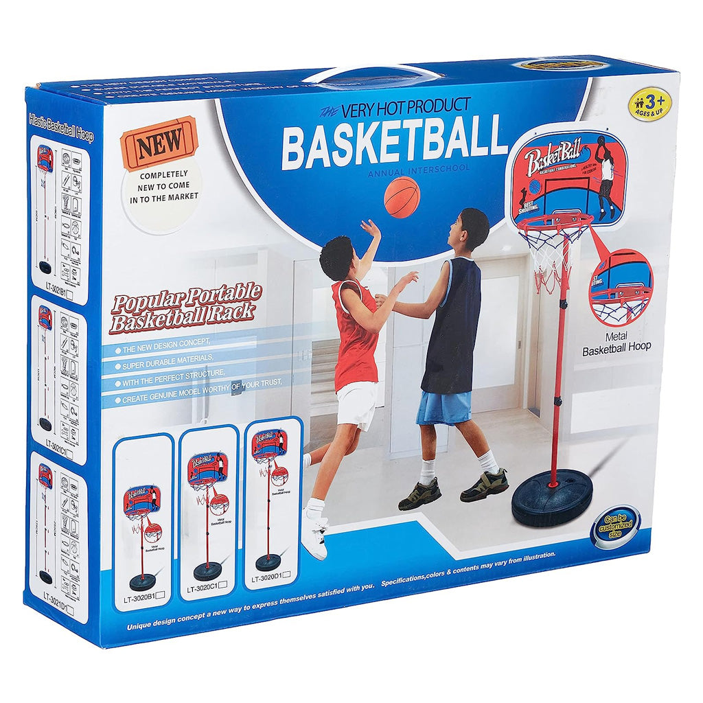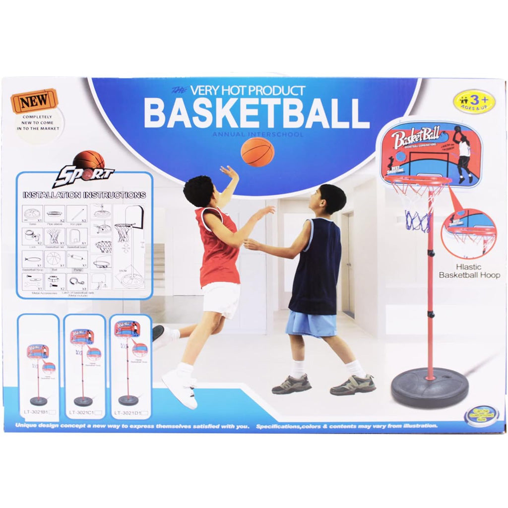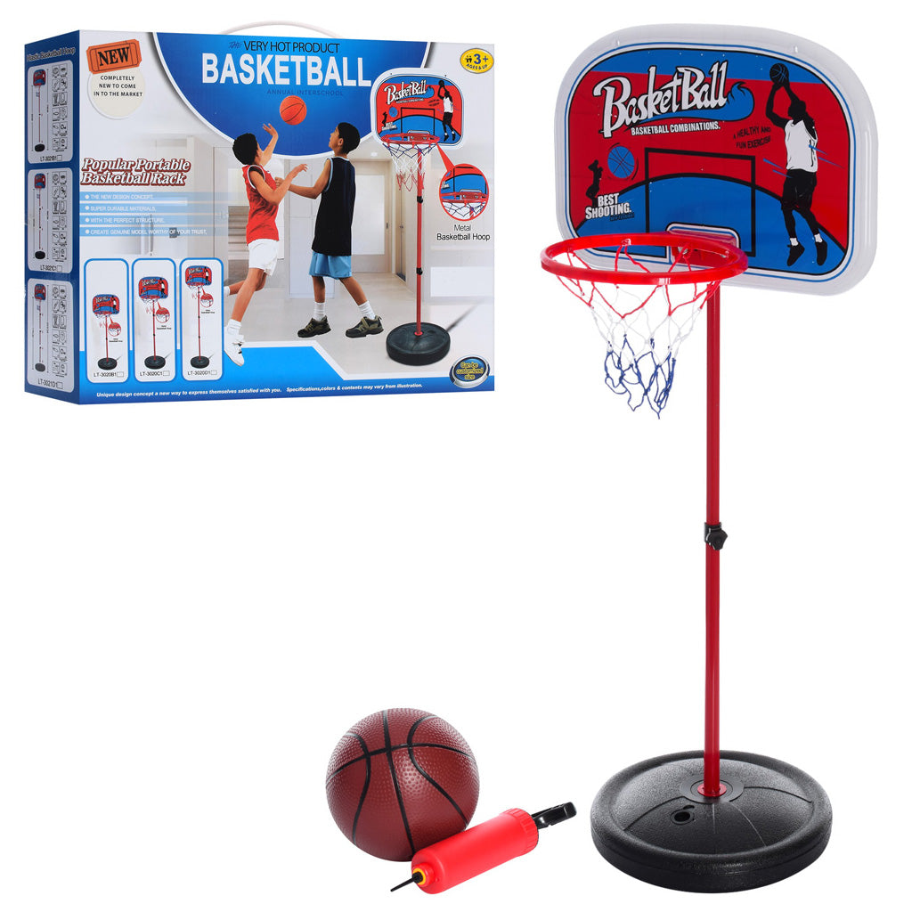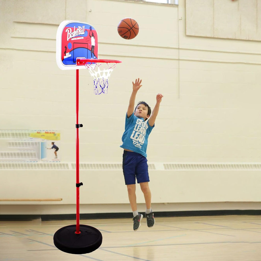 حامل كرة سلة بطول حوالي ١٦٠ سم، مناسب للأطفال من عمر ١٠٠ إلى ١٦٠ سم.