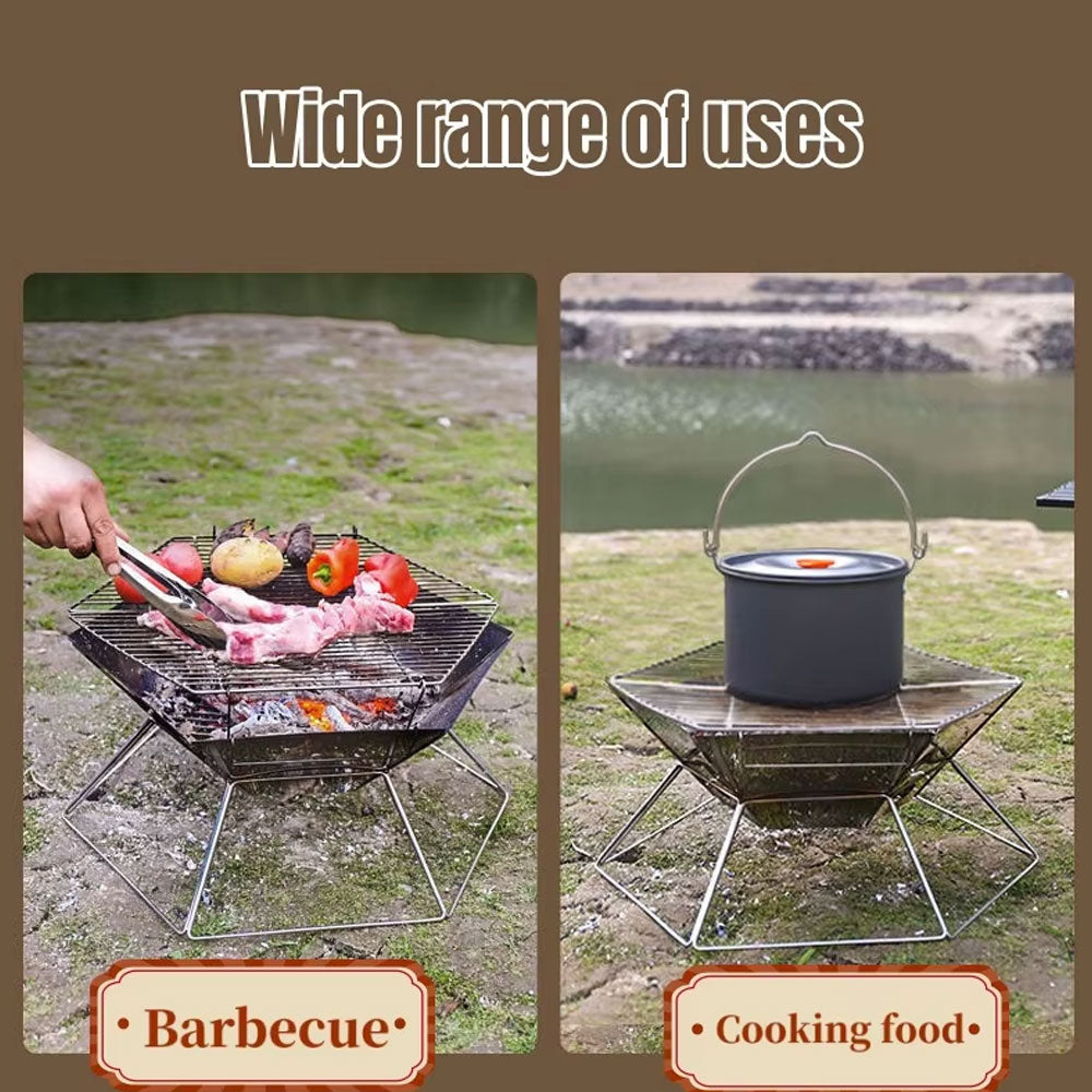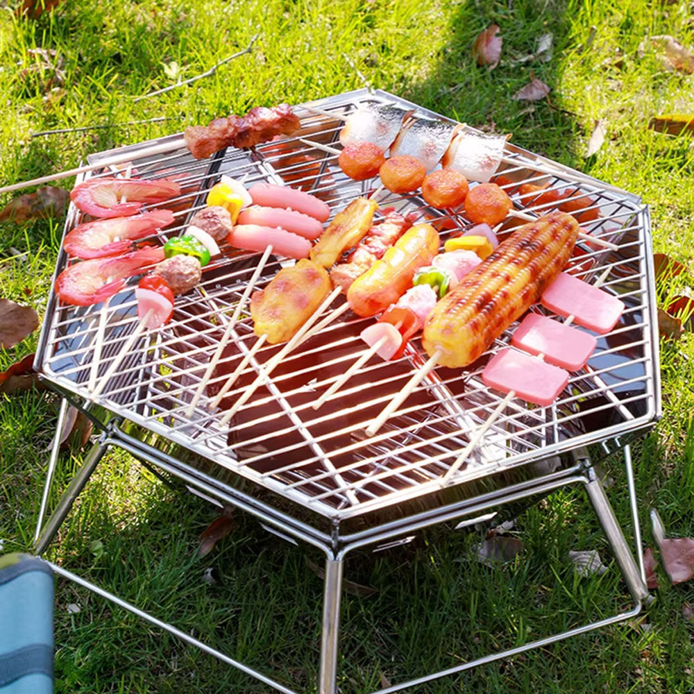 شواية خارجية قابلة للطي من الفولاذ المقاوم للصدأ، رف شواء قابل للفصل، موقد فحم، شواية خفيفة الوزن قابلة للطي