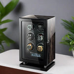 دلل ساعة مراقبتك في أحضان فاخرة من خلال جهاز لف الساعات الذكية Premium 6 الخاصة بنا، والذي يعمل بمحركات ألمانية ومزين بساعة من خشب الأبنوس زيبرانو - تحفة تحافظ على دقة الساعات بدقة ودقة.