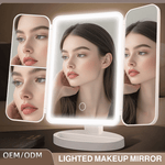 مرآة ماكياج LED مكتبية مكبرة ثلاثية الطيات مع زجاج مكبر، صندوق تخزين دوار، مرآة تزيين الأميرة، مرآة تجميلية مكتبية على الطاولة ,والسفر
