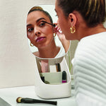 مع منظم مستحضرات التجميل مرآة قابلة للشحن تعمل باللمس