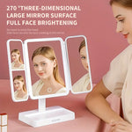 مرآة مكياج LED ثلاثية الطي مع 3 ألوان ضوء، قابلة للحمل والشحن، مرآة مكياج عالية الوضوح قابلة للدوران، مرآة ذكية قابلة للطي بإضاءة نهارية للمكتب، السكن الجامعي
