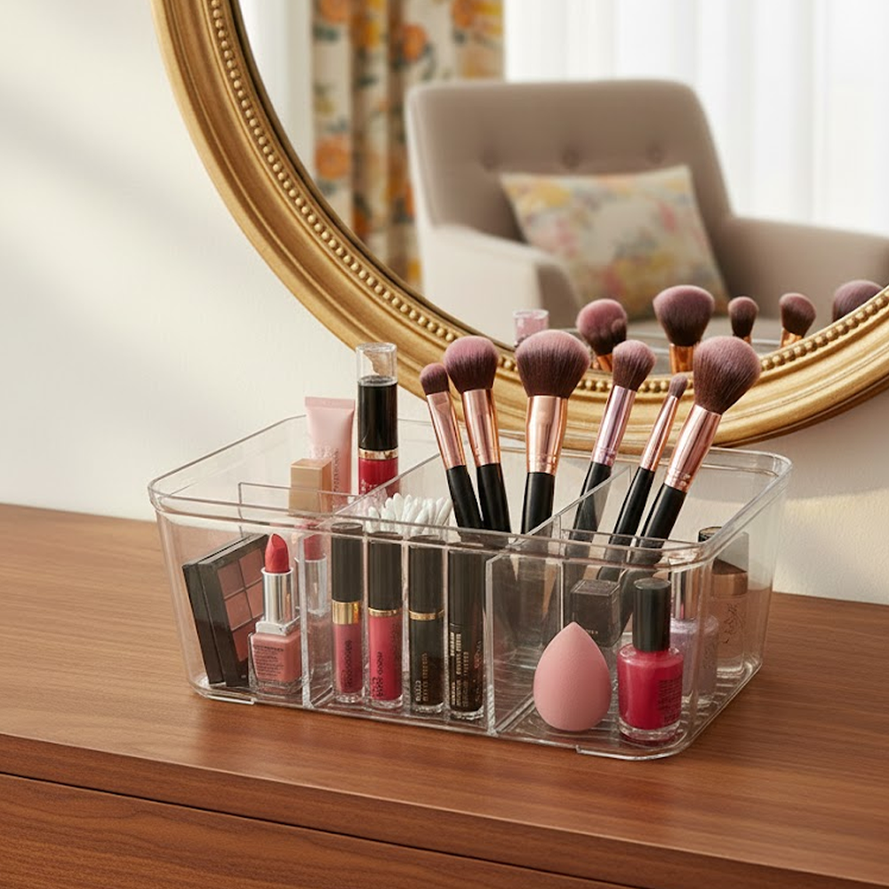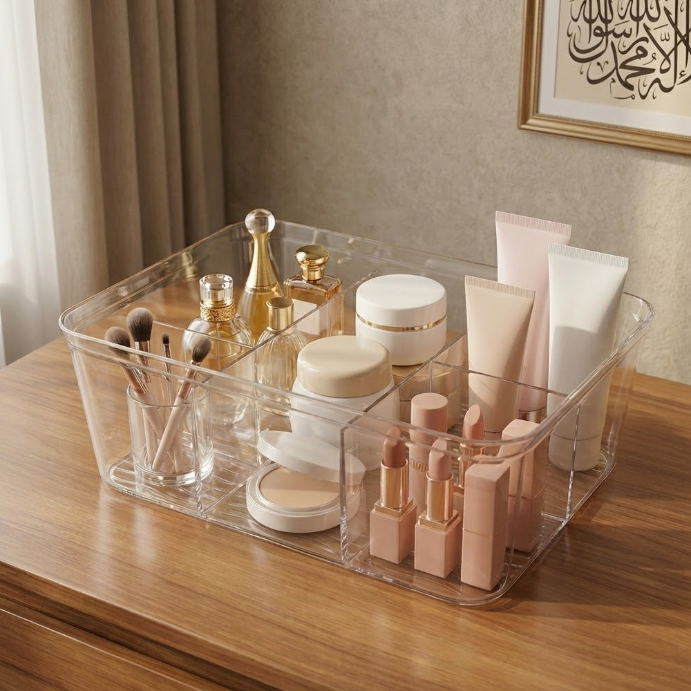 منظّم مكياج أكريليك شفاف متعدد الأقسام – ترتيب أنيق وسهل الوصول