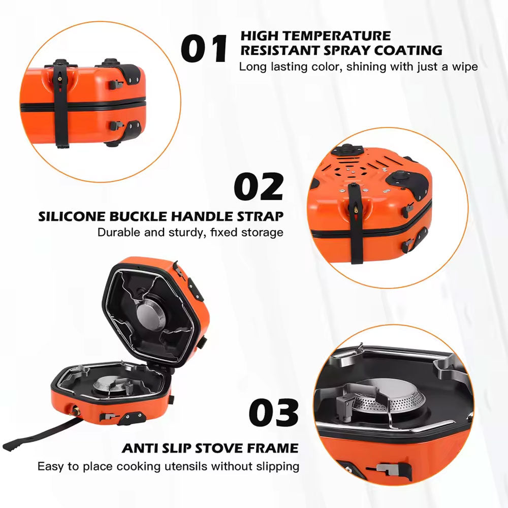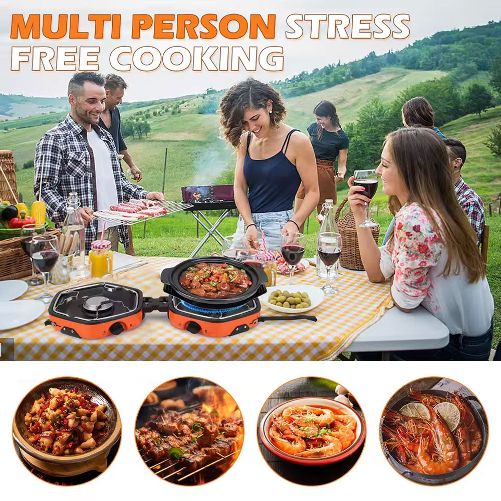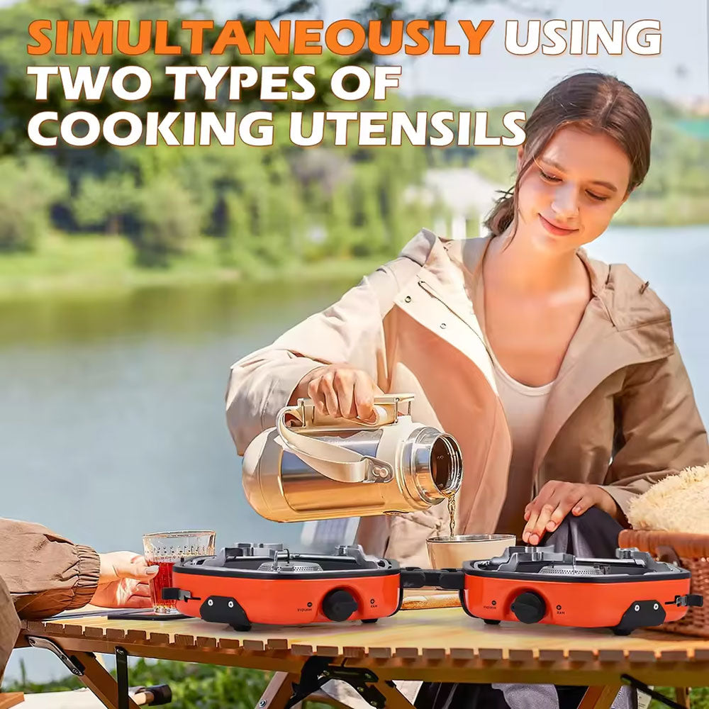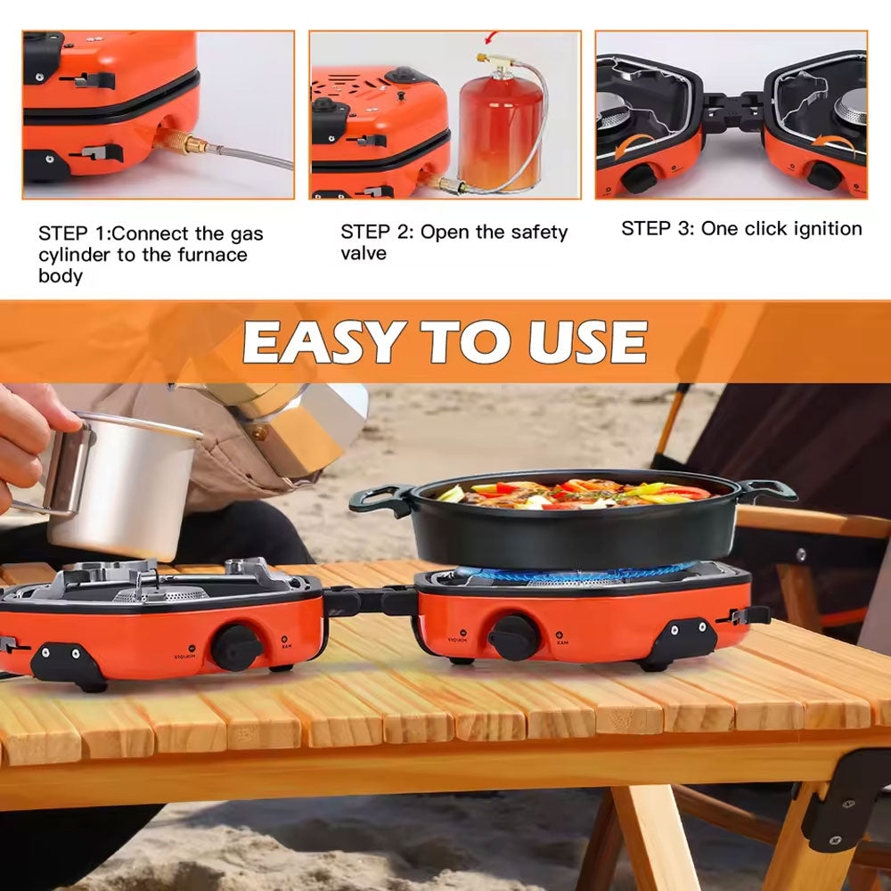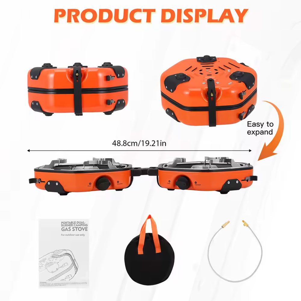 موقد غاز تخييم مزود بشعلتين مع حقيبة حمل