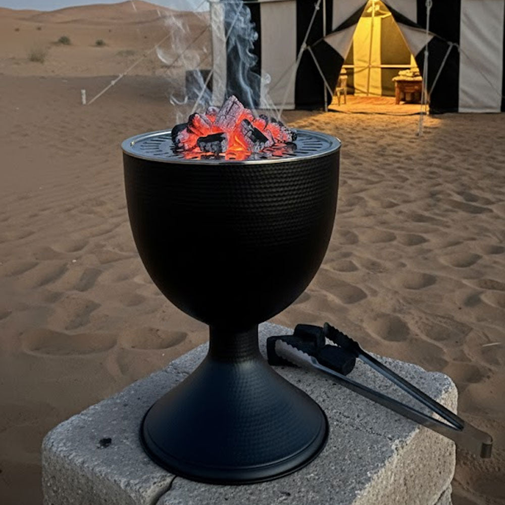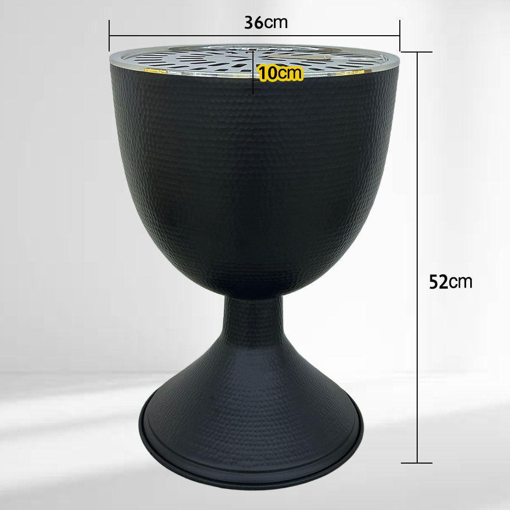 • 🔥 تهوية مثالية: فتحات تهوية جانبية لتوزيع الحرارة بشكل متساوٍ وسرعة اشتعال الفحم.