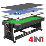 Includes all of the accessories needed to play the games you love such as pool cues and billiard balls, hockey pucks and pushers, and table tennis paddles and net.