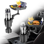 - صينية حامل أكواب للسيارة، حامل أكواب موسع للسيارة، صينية طاولة طعام قابلة للتوسيع 3 في 1 لتناول الطعام - أساسيات رحلة الطريق، أدوات السيارة للرجال، ملحقات السفر للسيارة تناسب 12-40 أونصة