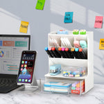 - منظم المكتب: مساحة كافية لجميع ملحقات المكتب المكتبية، والأوراق، ومشابك الورق، والملاحظات اللاصقة، وأقلام الرصاص، وأقلام الرصاص، وأقلام التحديد، ومستلزمات المكتب، وحامل أقلام الرصاص، وحامل أقلام المكتب، منظم مكتب ممتاز للوازم المكتبية