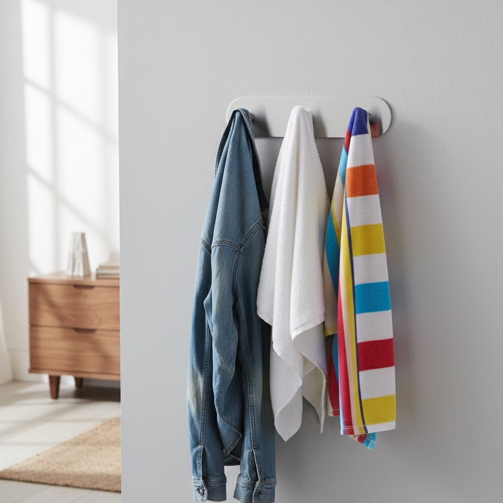 اضف لمسة من التنظيم والأناقة إلى منزلك مع علاقة الحائط اللاصقة متعددة الاستخدامات. تصميم عصري بسيط يناسب جميع الديكورات، ويمنحك مساحة إضافية لتعليق المفاتيح، المناشف، الحقائب، الإكسسوارات والمزيد — بدون حفر، بدون أدوات، وبدون تلف للجدران!