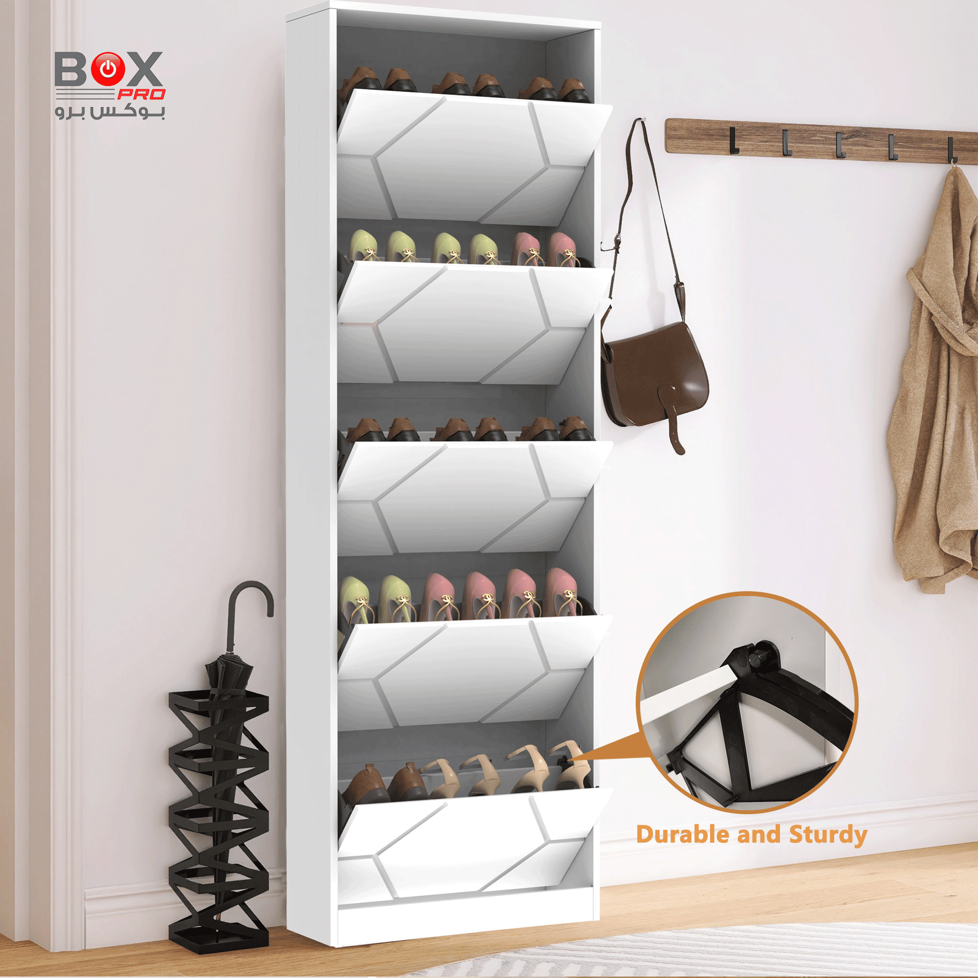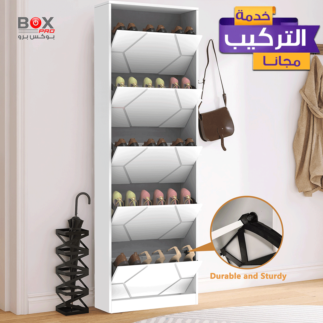خزانة أحذية كبيرة بـ 5 طبقات – تصميم أنيق بأدراج منحوتة من بوكس برو