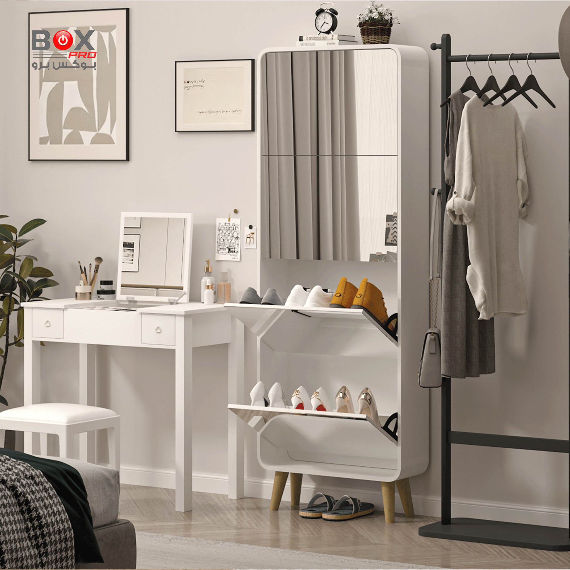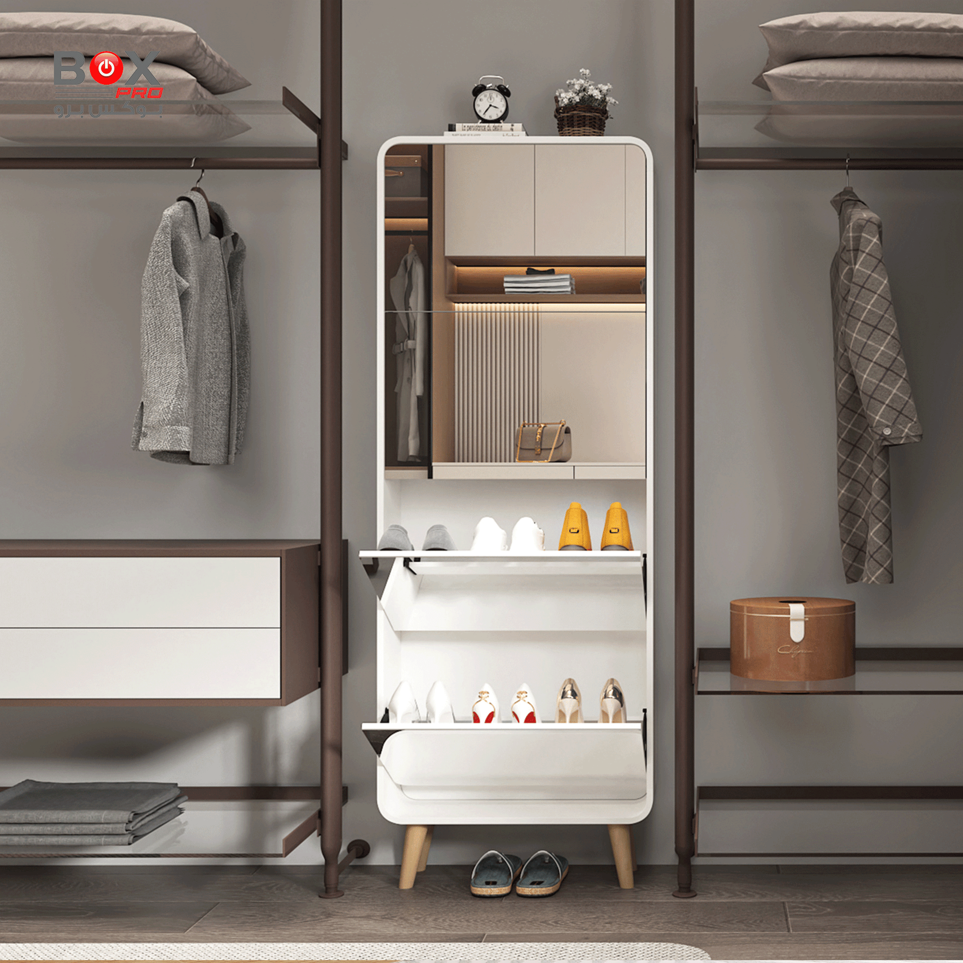 خزانة أحذية كبيرة 4 أدراج مع مرآة – أناقة وتنظيم من بوكس برو