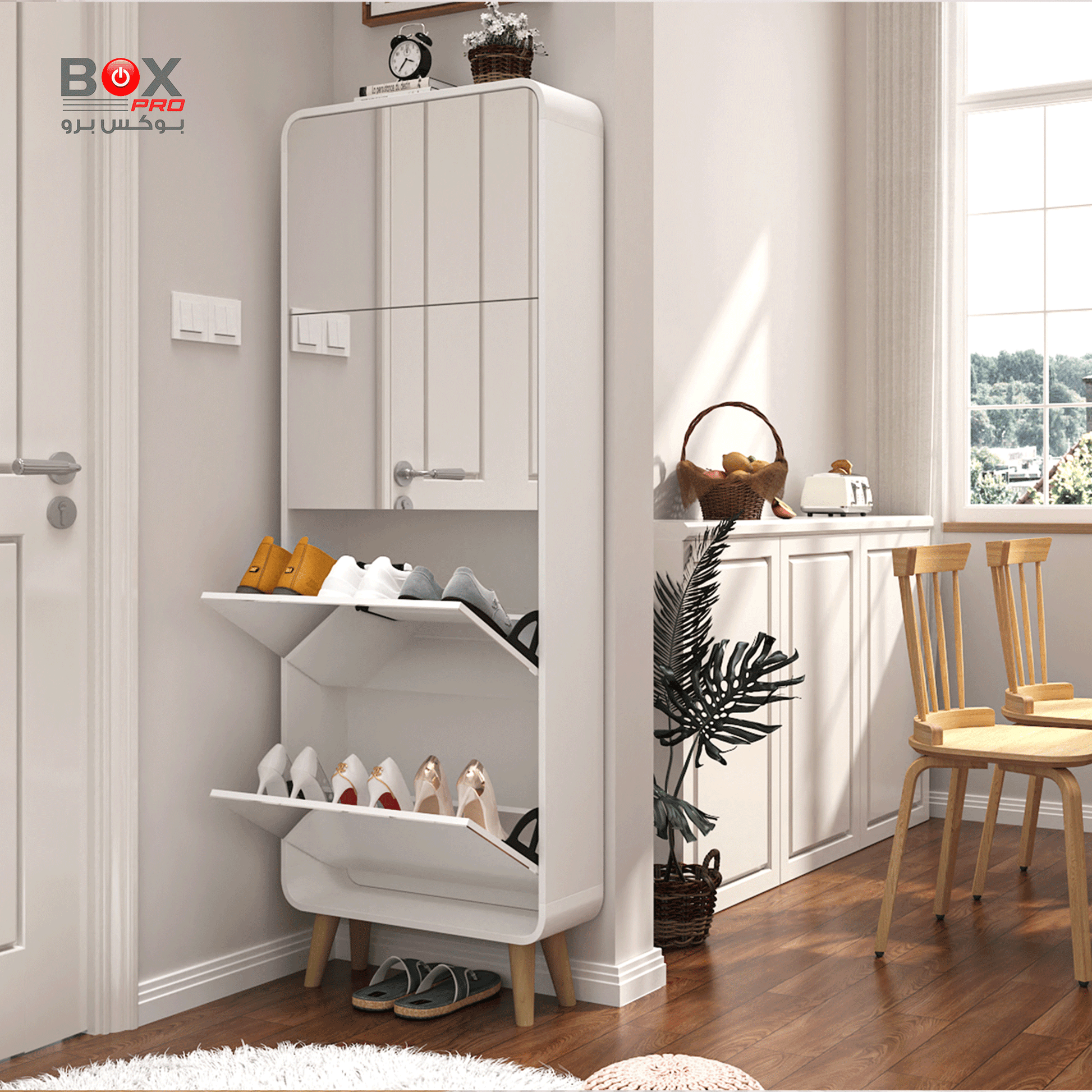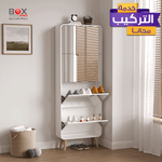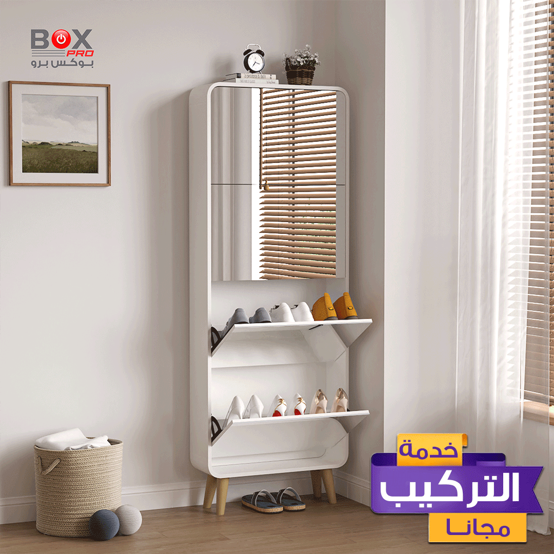 نظّم أحذيتك بذكاء مع خزانة الأحذية الكبيرة من بوكس برو، التي تجمع بين السعة العملية والتصميم العصري. تحتوي على 4 أدراج واسعة قابلة للفتح، لتمنحك مساحة تخزين مثالية، مع مرآة أنيقة مدمجة تضيف لمسة من الفخامة والوظيفة في آن واحد.