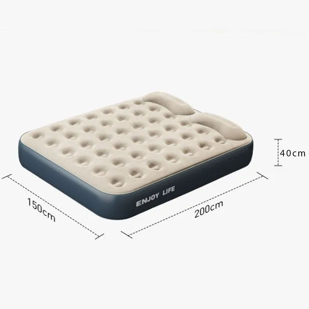 ملمس لطيف: السطح مصنوع من بلاستيك بي في سي المتين الناعم الملمس، وجيد التهوية، ومقاوم للماء، ويحتفظ بالحرارة، ومضاد للكهرباء الساكنة، مما يسمح لك بالنوم بهدوء. السرير بالكامل ثابت ولا يفقد شكله ولن يغوص فيه. سيدوم السرير الهوائي المتين لسنوات قادمة
