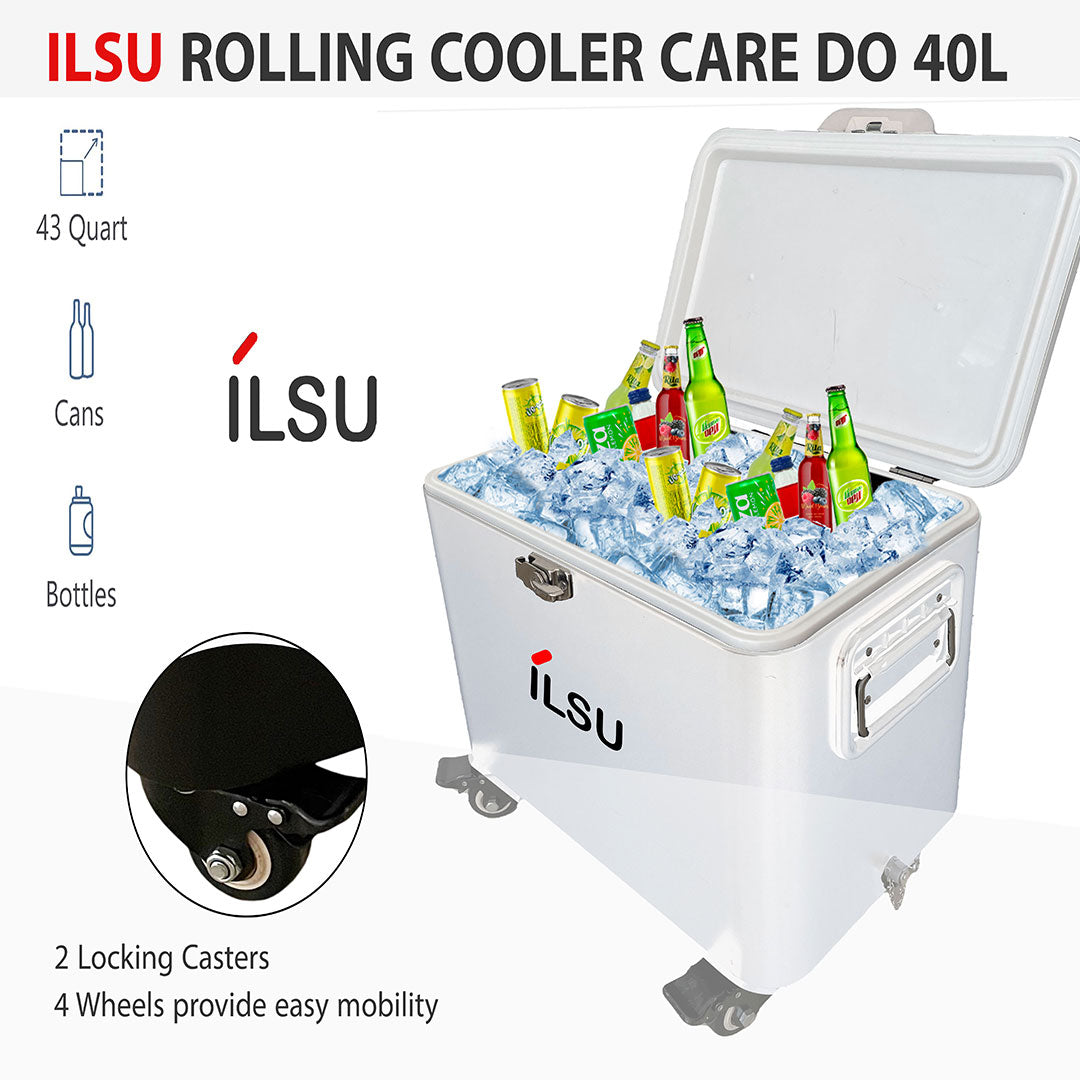 صندوق تبريد متحرك بسعة 40 لتر من ILSU مع يد قابلة للسحب مع عجلات وحامل خارجي وعربة تبريد للمشروبات والحفلات وحمام السباحة والحديقة