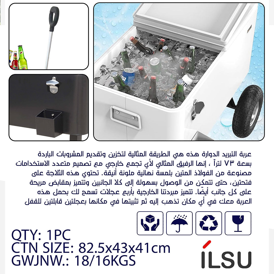 صندوق وعربة تبريد متحرك بسعة 73 لتر بعجلات كبيرة من ILSU