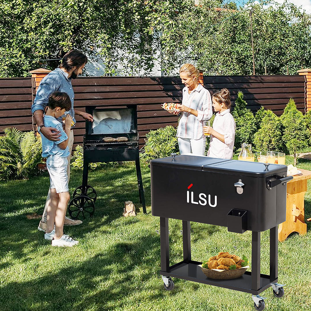 صندوق وعربة تبريد متحرك بسعة 73 لتر من ILSU مع اربع عجلات متحركة مع قفل العجل وحامل ستاند في الاسفل وعربة تبريد للمشروبات والحفلات وحمام السباحة والحديقة
