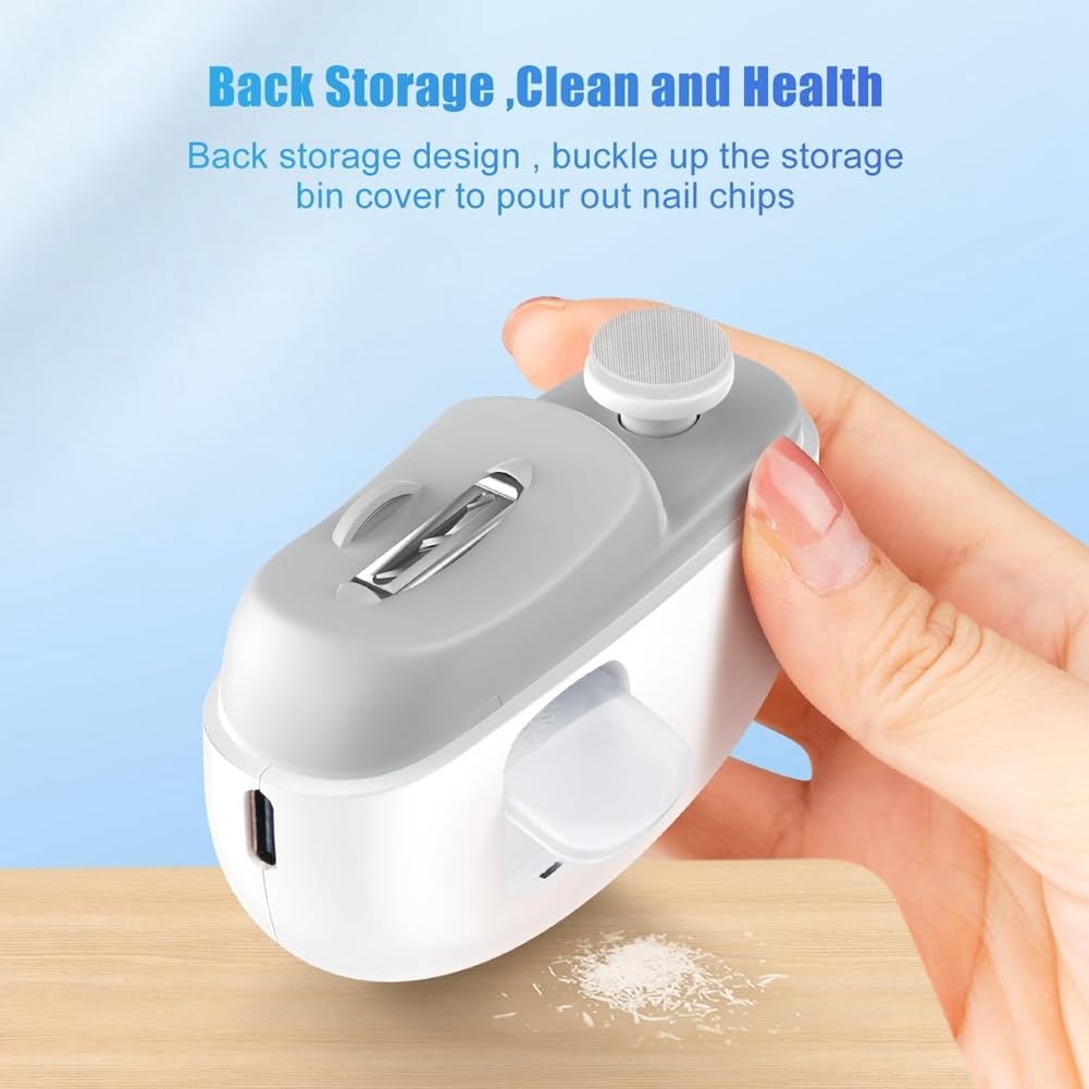 مقص أظافر أوتوماتيكي مع ضوء وسرعتين، مقص أظافر وتلميع أظافر، تخزين قصاصات الأظافر قابلة لإعادة الشحن