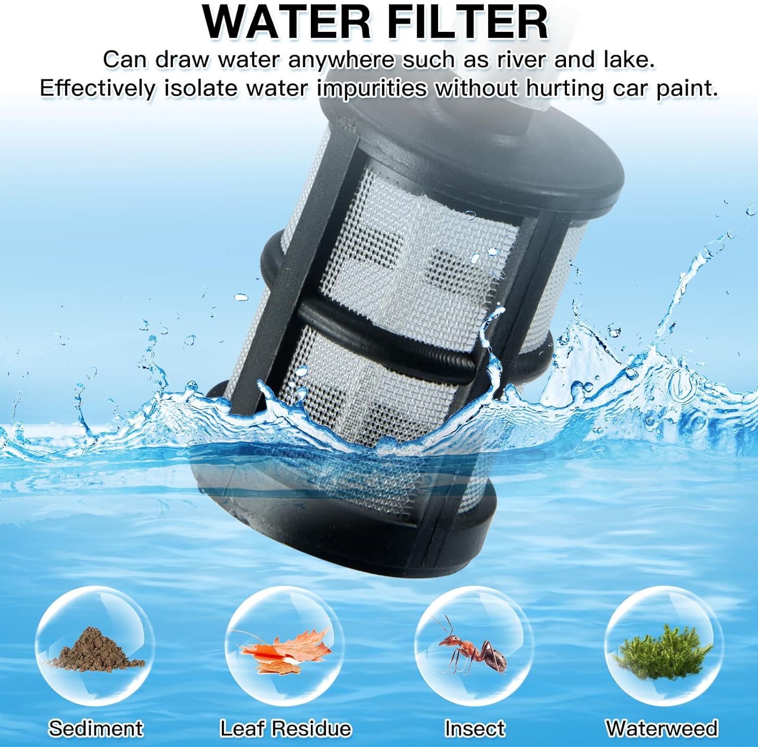 يمكن أن يقوم بتصفية الشوائب أو الجسيمات أو أوراق النفايات أو الحمأة بشكل فعال، مما يوفر حماية أفضل لغسالة الضغط الخاصة بنا.