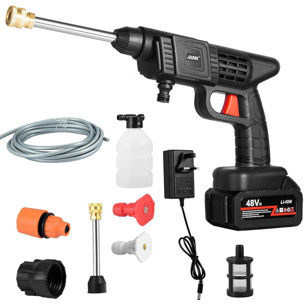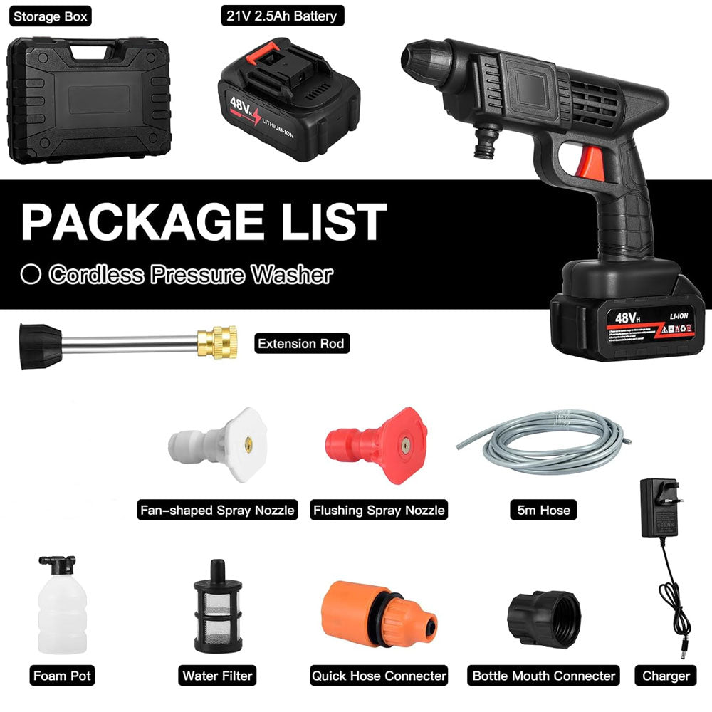 مسدس غسيل بالضغط العالى ، غسالة كهربائية محمولة 21 فولت مع بطارية قابلة لإعادة الشحن 2.5 أمبير وفوهة 6 في 1، غسالة نفاثة عالية الضغط 26 بار مع خرطوم 5 متر، للاستخدام في السيارة والمنزل والحديقة والسفر