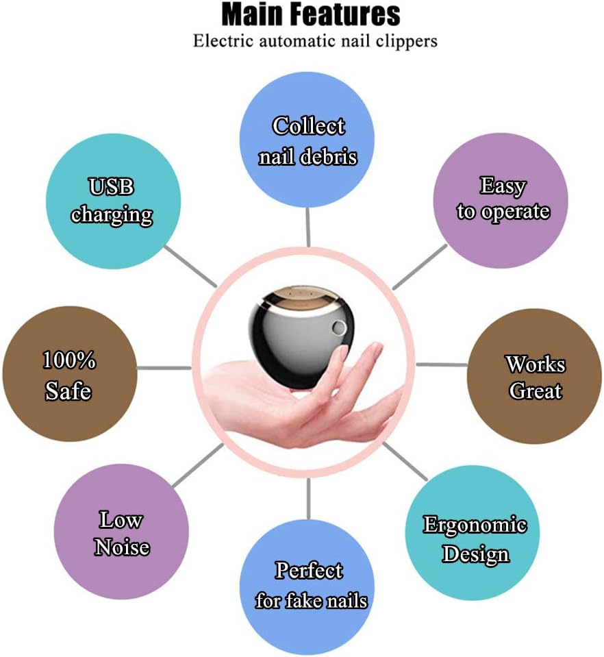 لن تقلق أبدًا بشأن قطع أصابع طفلك عن طريق الخطأ مع مقص أظافر الأطفال هذا. فهو مصمم هندسيًا ومريحًا جدًا للإمساك به. علاوة على ذلك، فإن مقص أظافر الأطفال الكهربائي هذا آمن تمامًا. الشفرة مخفية خلف فتحة لحماية الأصابع. مقص الأظافر الأوتوماتيكي آمن تمامًا عندما تلمس أصابعك الفتحات مباشرة. يمكنك حتى قص الأظافر وعيناك مغلقتان أو في الظلام. مقص الأظافر هذا مناسب لكبار السن الذين لا يتمتعون برؤية جيدة. حتى الأطفال أو كبار السن يمكنهم استخدام مقص الأظافر الكهربائي هذا دون قراءة دليل المستخدم. يعمل مقص الأظافر هذا بزر واحد. ما عليك سوى الضغط على الزر، وسيقوم مقص الأظافر الكهربائي بقص الأظافر وتقليمها وبردها وتلميعها وتنظيف بقايا الأظافر في نفس الوقت. بالمقارنة مع مقصات الأظافر التقليدية، فإن مقص الأظافر الكهربائي هذا، أو مبرد الأظافر، أو مقص الأظافر، أيًا كان اسمه، يجعل قص الأظافر سهلًا وأنيقًا وناعمًا. مع مقص الأظافر هذا، لن تقلق أبدًا بشأن تطاير بقايا الأظافر المقطوعة في كل مكان، ولن تقلق بشأن قضاء الكثير من الوقت في البحث عن بقايا الأظافر. يحتوي مقص الأظافر هذا على صندوق تخزين مدمج، وعندما يعمل، فإنه يقوم بشفط بقايا الأظافر المقطوعة إلى صندوق التخزين تلقائيًا. لذا، يمكنك استخدام مبرد الأظافر أو مقص الأظافر أو مقص الأظافر هذا في كل مكان، في المكتب، على السرير، في السيارة، إلخ، فهو يجمع غبار الأظافر بنفسه.