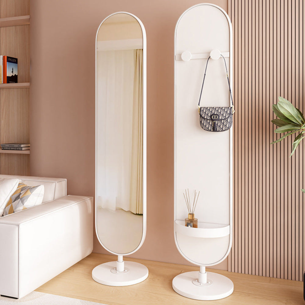 مرآة للجسم بالكامل ، مثبتة على الأرض، غرفة نوم منزلية، مرآة دوارة من الحديد مع  مكان تخزين ، مرآة للجسم بالكامل للفتيات