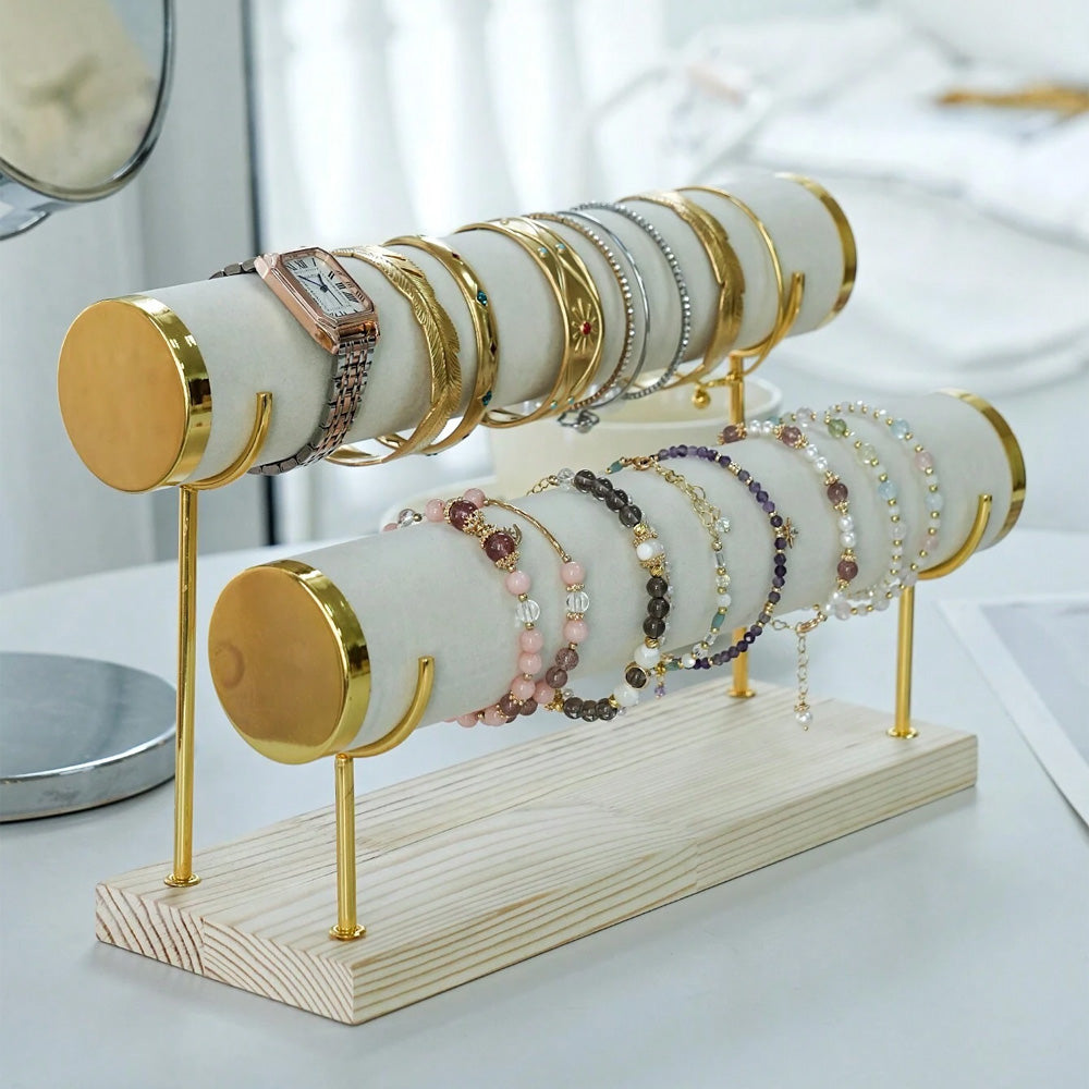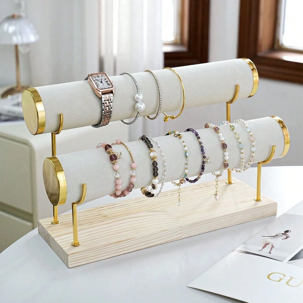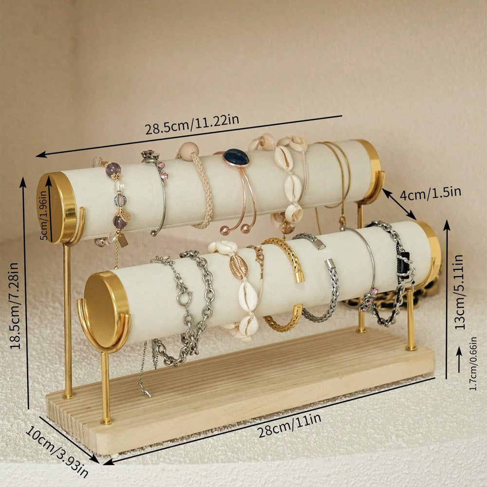 حامل مجوهرات مكون من طبقتين على شكل سوار، اللون: بيج