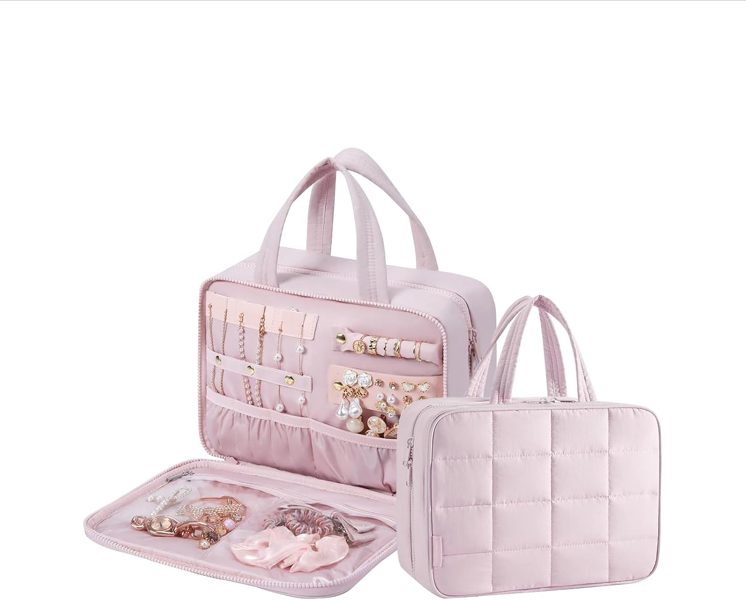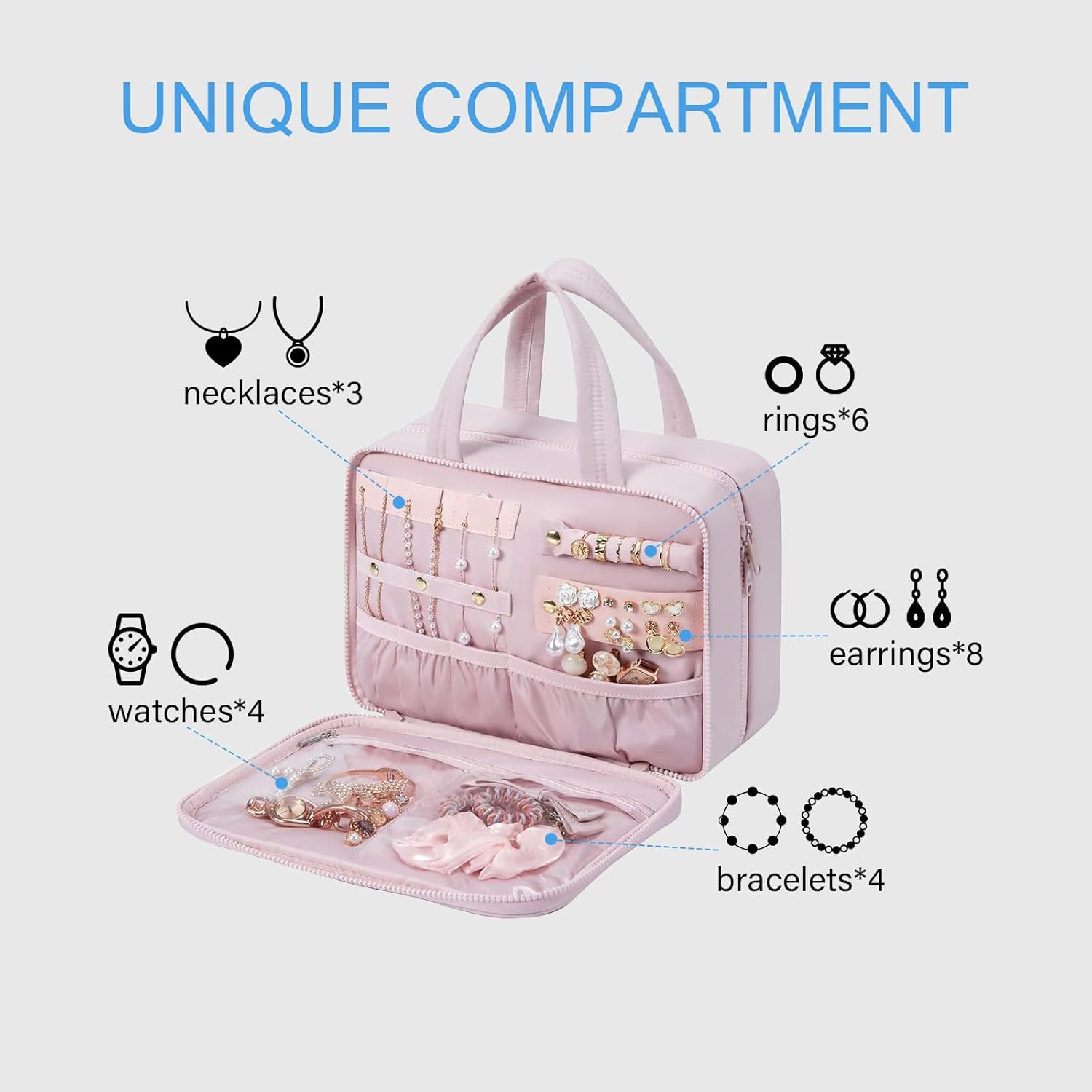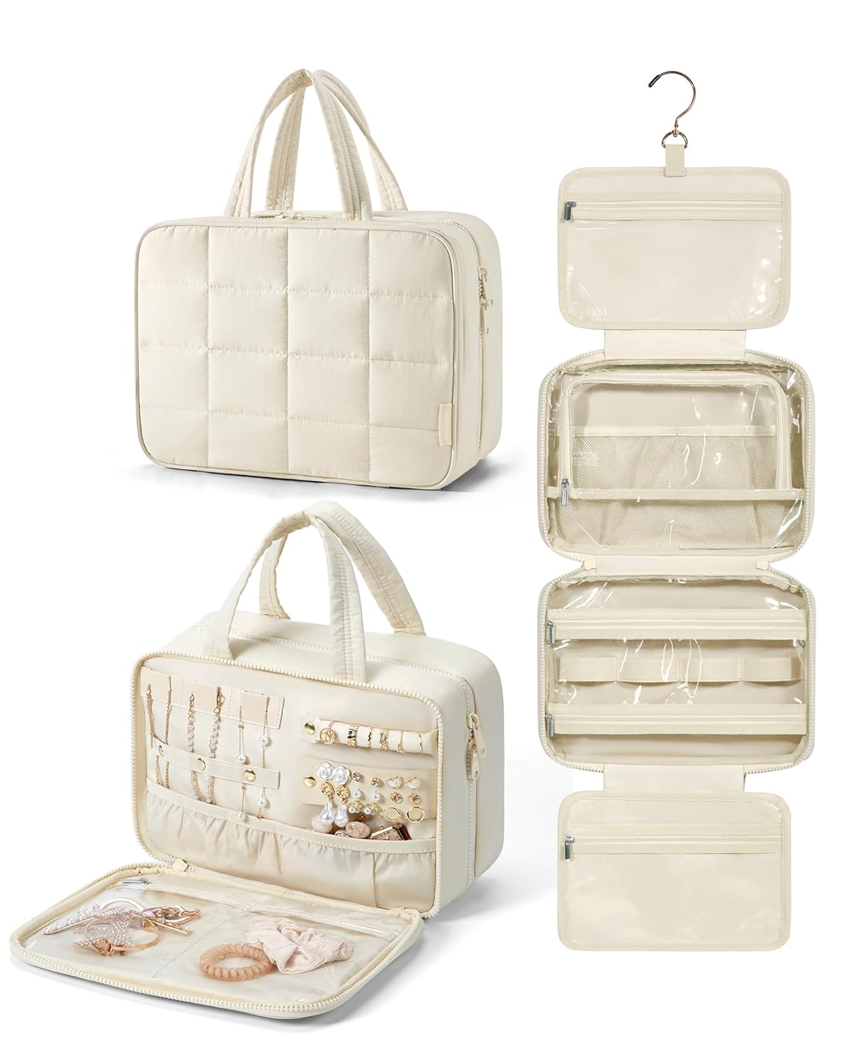 حقيبة أدوات الزينة: حقيبة أدوات الزينة من باجزمارت مصممة مع حجرة لتنظيم المجوهرات. إضافة حجرة في الجيب الأمامي لحقيبة السفر للخواتم وأقراط الأذن والأساور والقلائد والمجوهرات الأخرى، تلبي احتياجات أدوات الزينة والمكياج أثناء السفر.