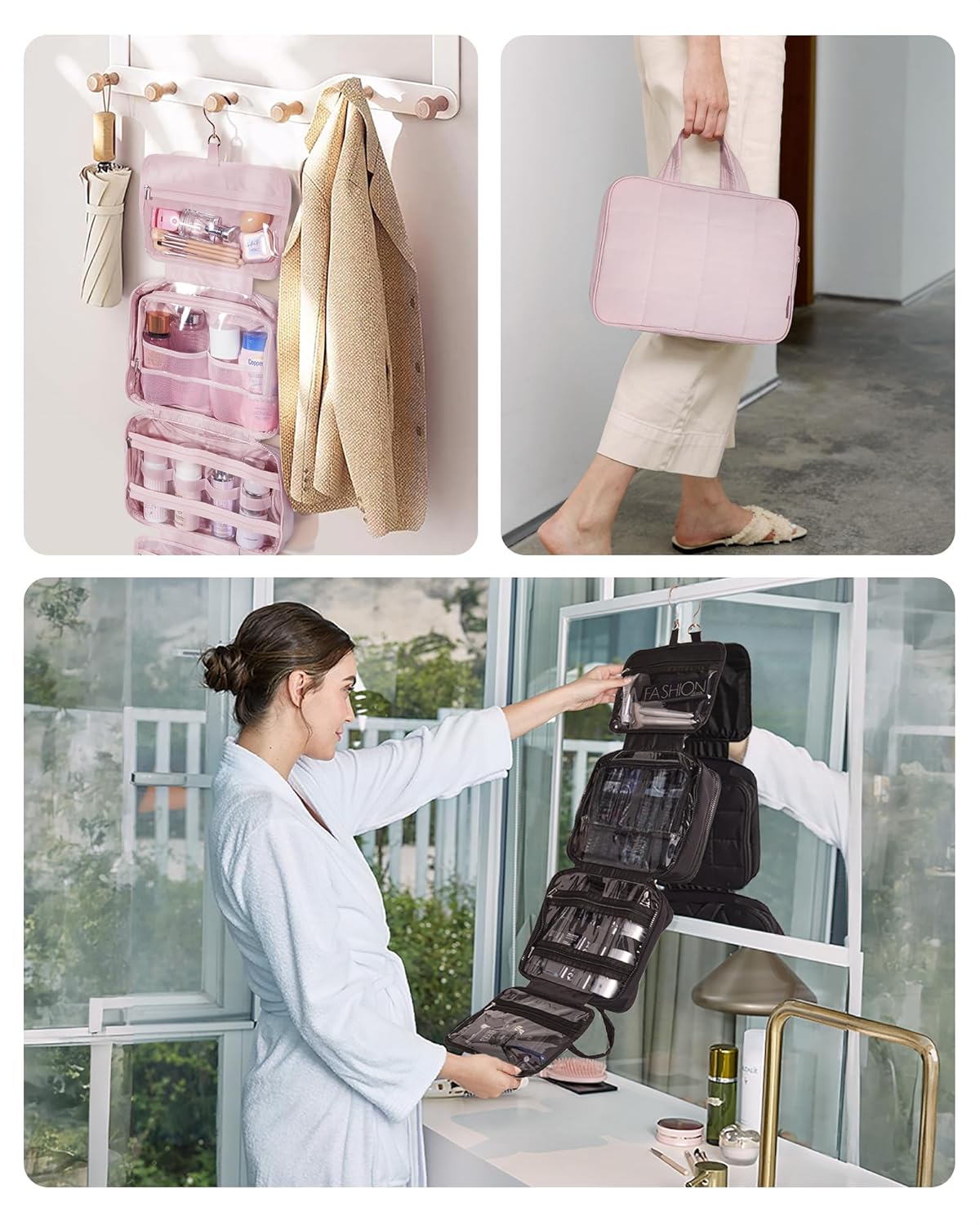 حقيبة تخزين أدوات الزينة متعددة الوظائف، مصممة خصيصًا للمسافر العصري، وهي ضرورية لأي شخص يقدر التنظيم والراحة. حقيبة التخزين هذه ليست مجرد حقيبة أدوات زينة؛ إنها حل متعدد الاستخدامات للحفاظ على أساسياتك منظمة بشكل أنيق ويمكن الوصول إليها بسهولة. سواء كنت متجهًا لقضاء عطلة نهاية الأسبوع أو تحزم أمتعتك لرحلة عمل، فهذه الحقيبة مصممة لتلبية احتياجاتك. بفضل ميزة التعليق، يمكن تعليقها بسهولة في الحمام أو الخزانة، مما يوفر المساحة ويحافظ على أغراضك في متناول اليد.