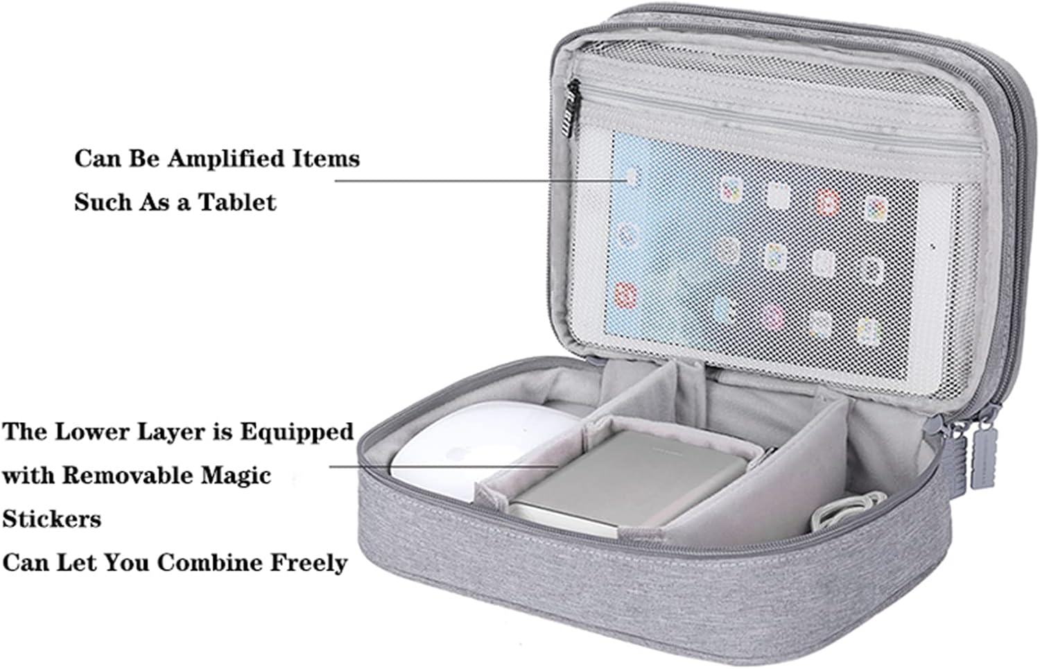 【 مزدوجة وواسعة كبيرة: الأبعاد: 26.6 × 19.7 × 9 سم. يمكن وضع حقيبة الكابل هذه بسهولة في حقيبة الظهر والسفر وهي خيارك الأفضل أو العمل. يمكن تنظيم حقيبة كابلات التسجيلات (مثل أجهزة USB وسدادات الأذن وماكينات جز العشب والكاميرات) للعمل مع حقيبة شبكي كبيرة بسحاب لجهاز iPad mini