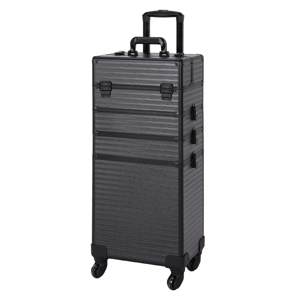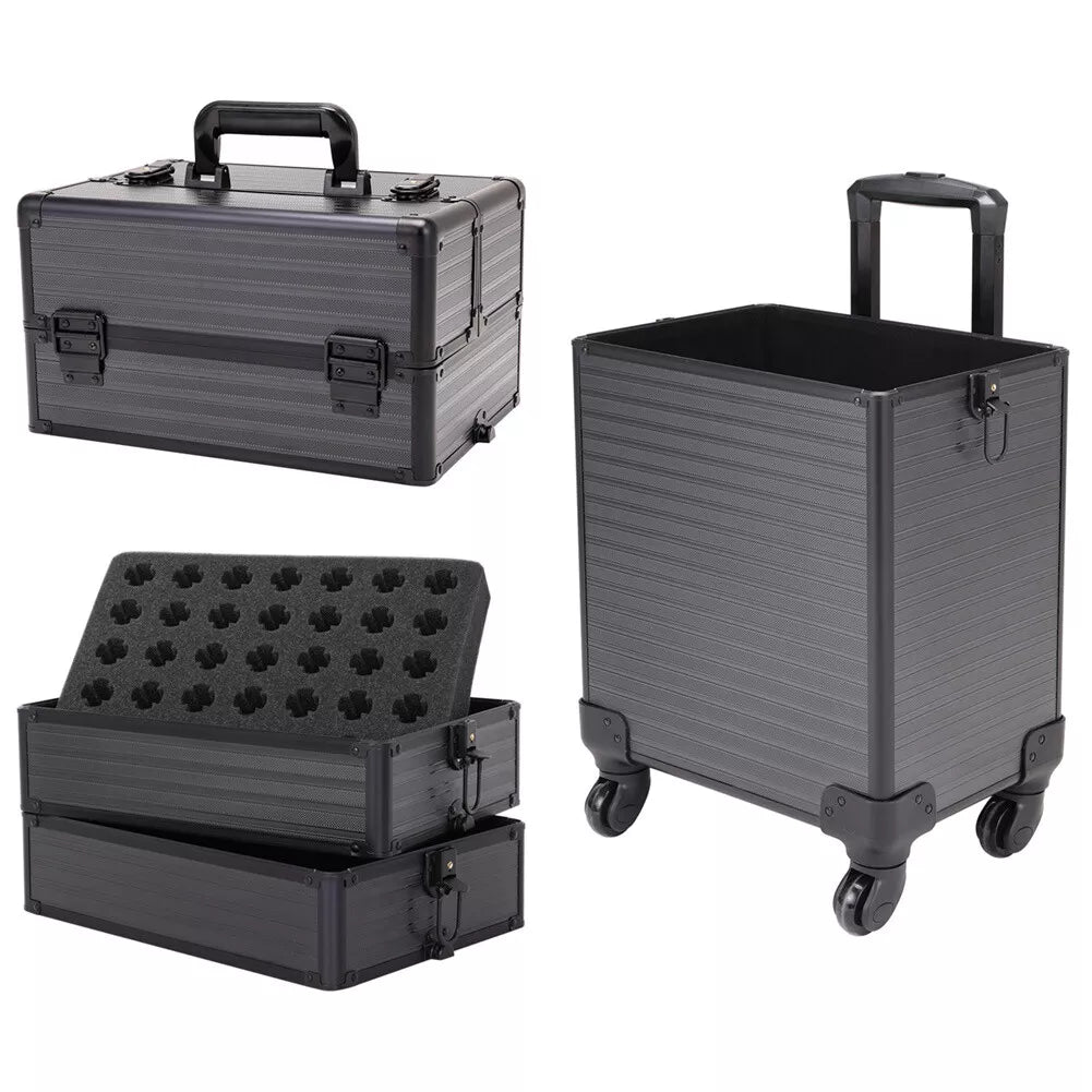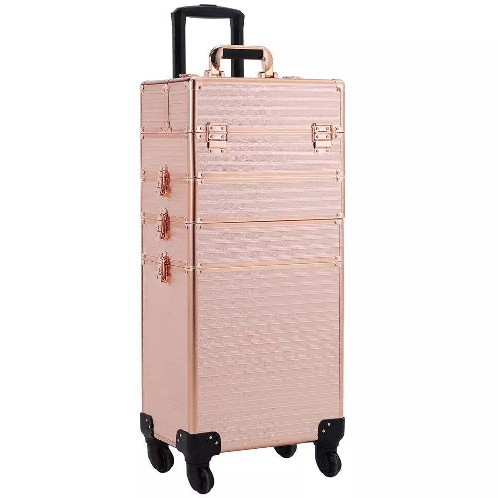 * عجلات دوارة قابلة للفصل في جميع الاتجاهات ومقبض تلسكوبي يجعلان حقيبة المكياج هذه مريحة للحمل.
