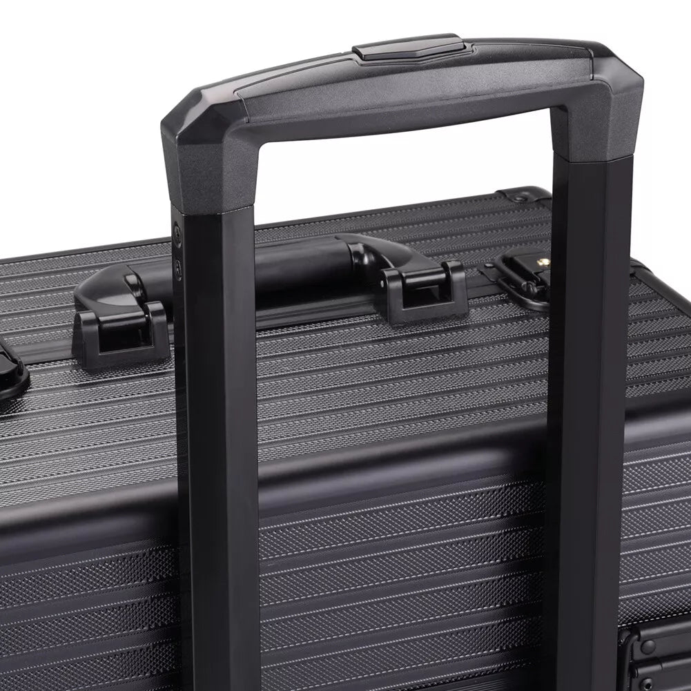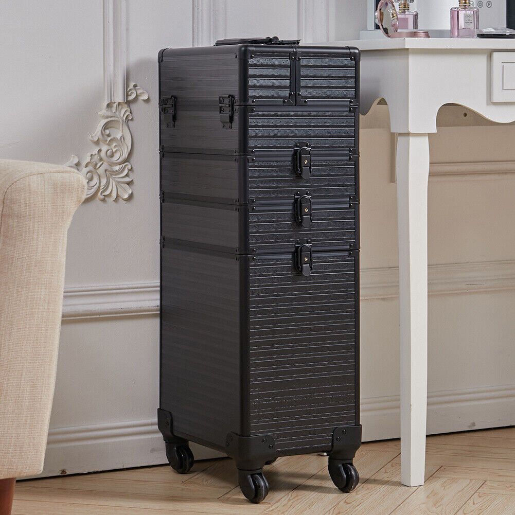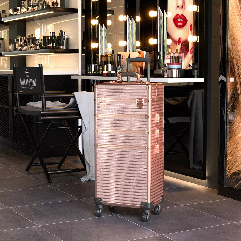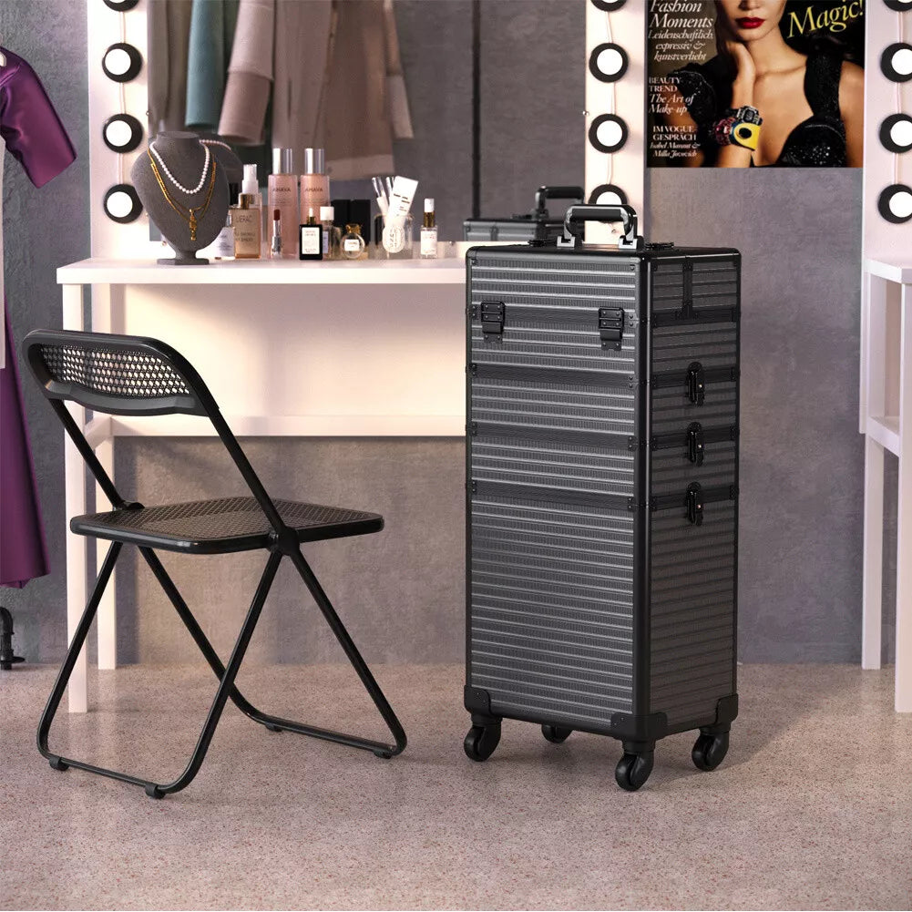 * عجلات دوارة قابلة للفصل في جميع الاتجاهات ومقبض تلسكوبي يجعلان حقيبة المكياج هذه مريحة للحمل.