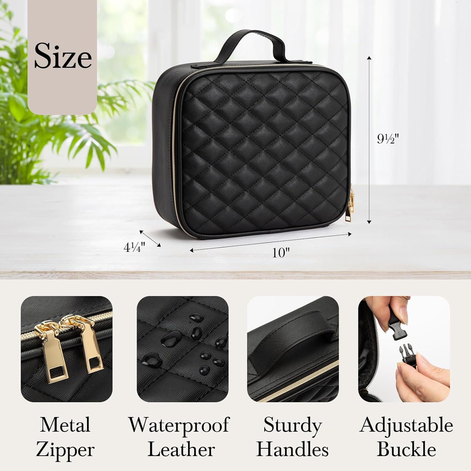- هيكل فاخر: مصنوع من مواد تجميل مصنوعة من الجلد ومستلزمات الأطفال، تم تصميم حقيبة لهذا الغرض لحماية مستحضرات التجميل الخاصة بك من الانسكابات والصدمات ومستحضرات التجميل والتلف الناتج عن أمراض البوبي. الموجات معززة المزيد من الحماية والأمان.