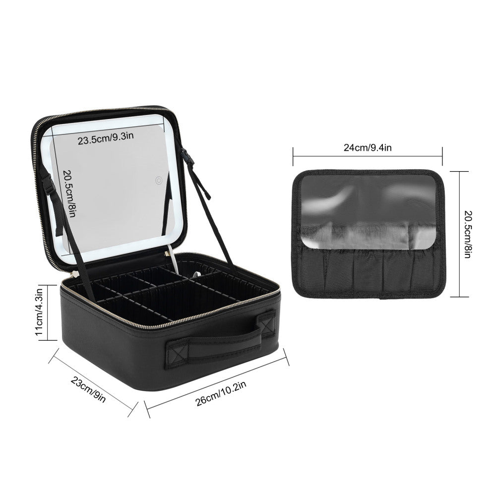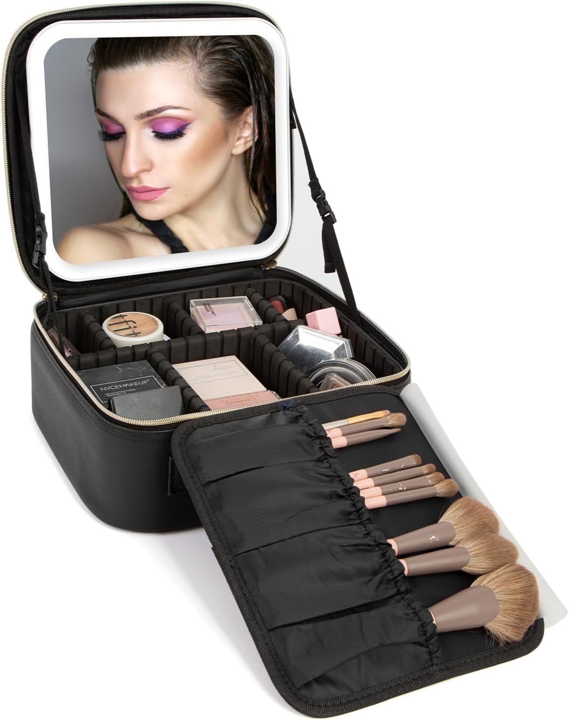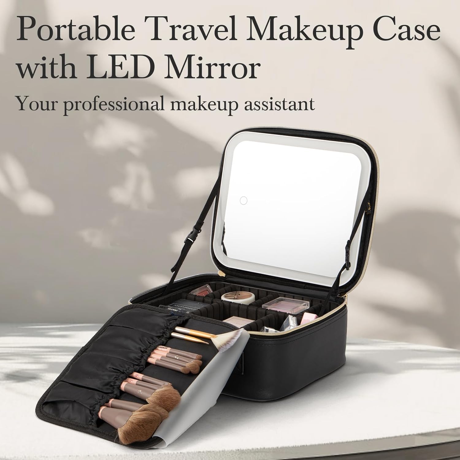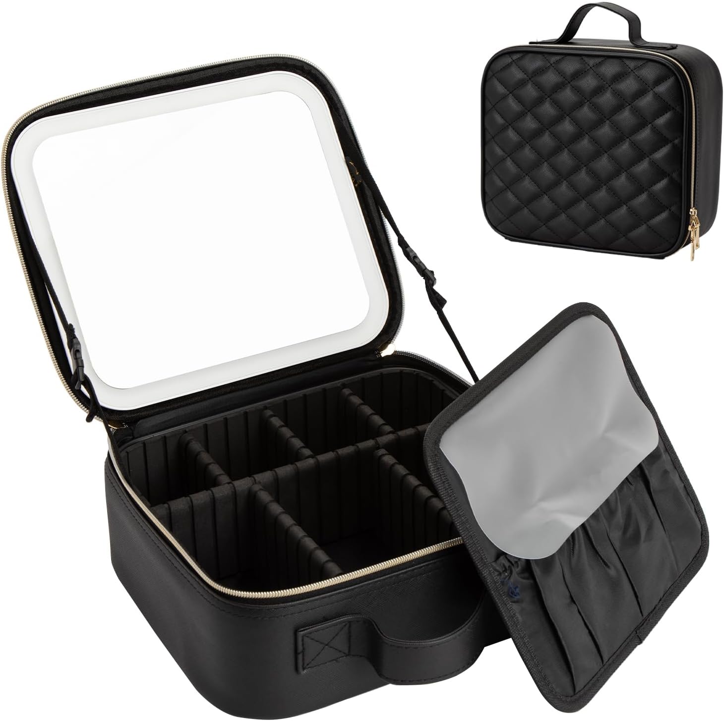 - حقيبة مكياج مع مرآة LED: تتميز بإضاءة LED مدمجة قابلة للتعديل توفر إضاءة لتقدم المكياج، وتتكرر أضواء النهار الطبيعية للمساعدة في تحقيق مظهر مثالي في كل مرة.