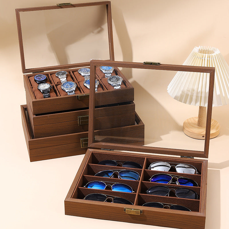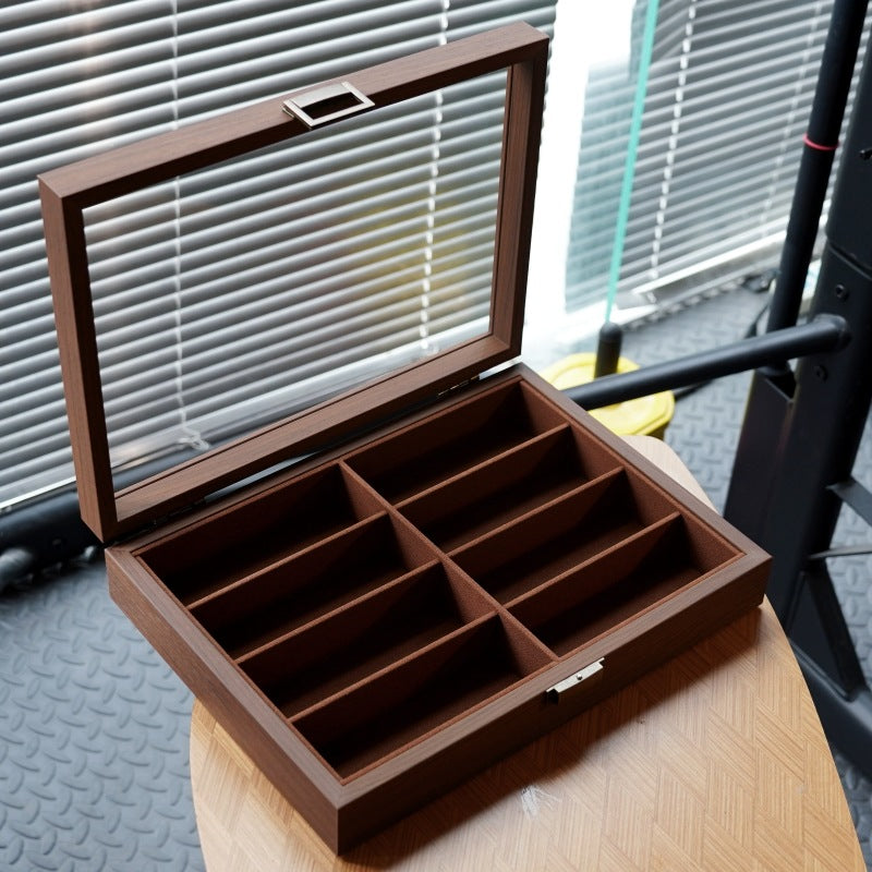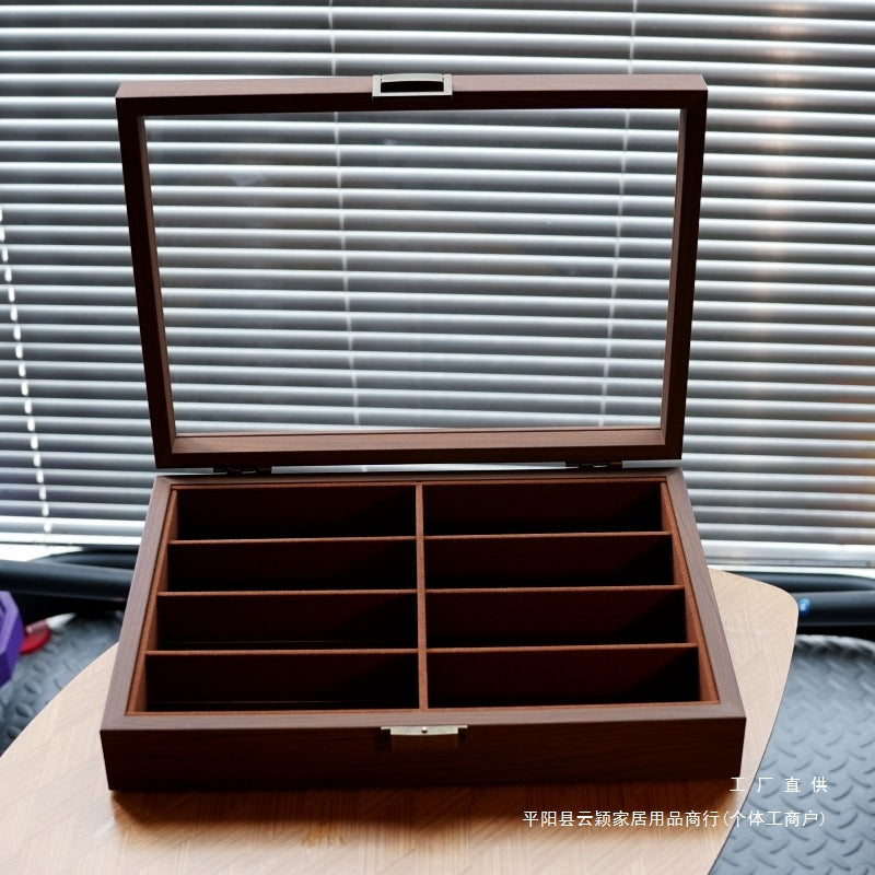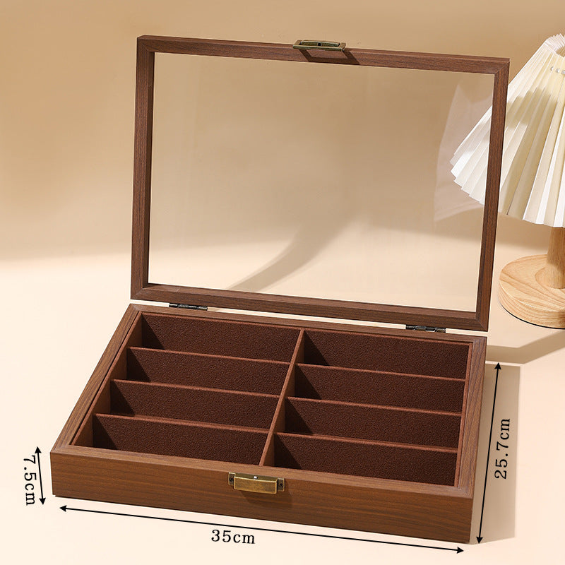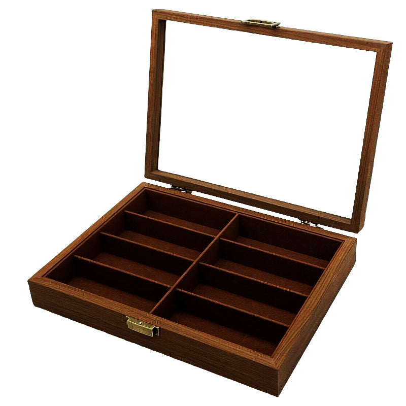 صندوق تخزين النظارات الخشبي مكون من 8 اماكن تخزين لعرض النظارات والمحافظة عليها من خشب الجوز الأسود