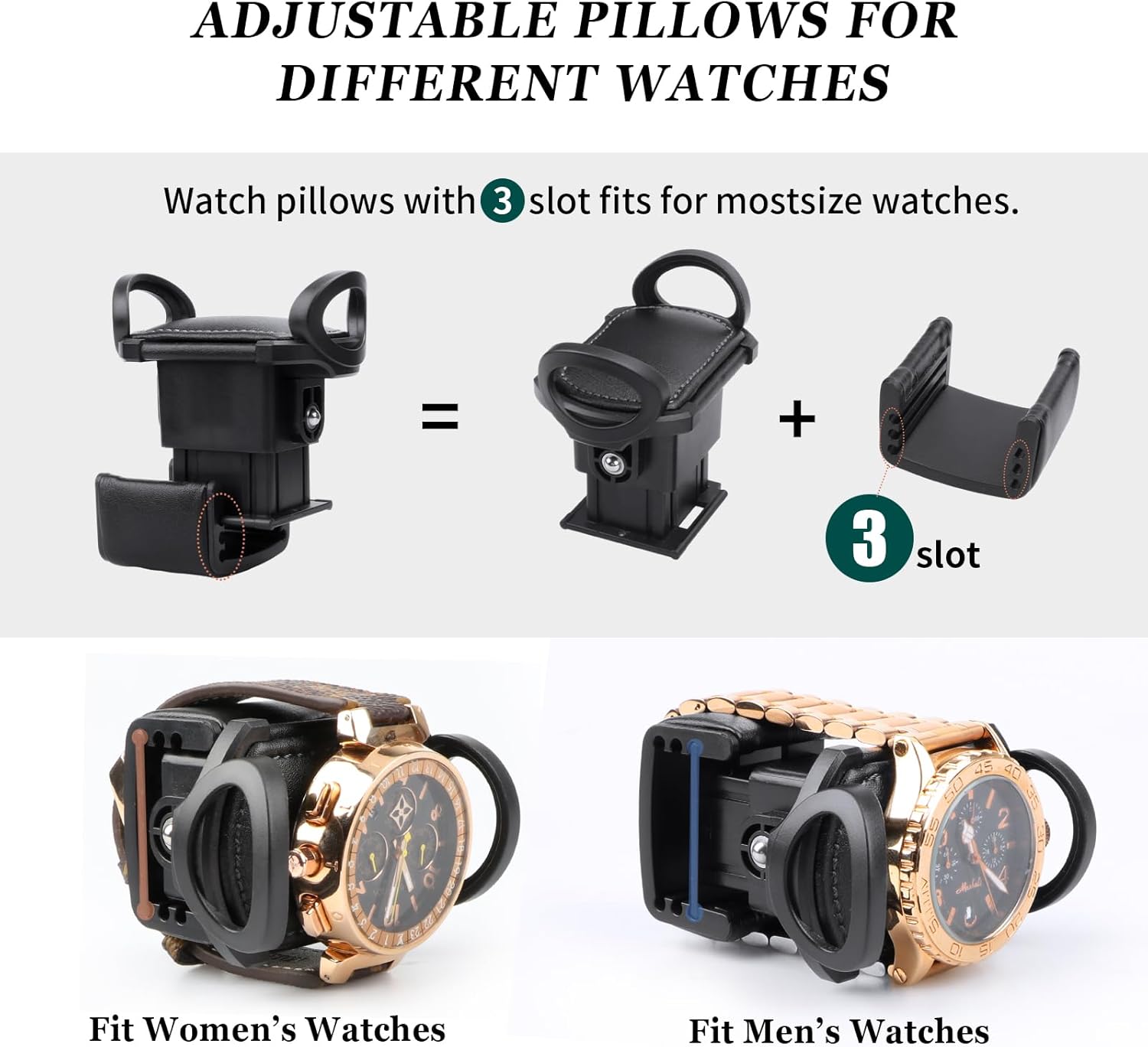 - يناسب معظم الساعات: يمكن ضغط حاملي الساعات القابلة للتعديل ليناسب أساور الساعة التي يبلغ طولها 6 انش حتى 9 انش. الوسادة المرنة ومتعددة الاستخدامات تجعل ساعتك صغيرة للغاية ولن تسقط عند لفها. (مينا الساعة لا يزيد عن 55 ملم)