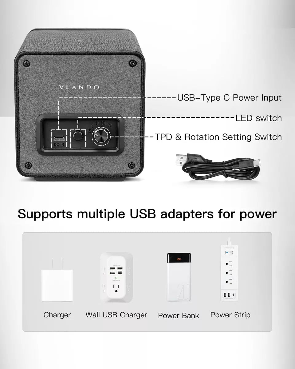 - يستخدم محول طاقة منخفض (5-9 فولت) ويتميز بمحرك مابوتشي ياباني صامت، مما يضمن تشغيلًا هادئًا للغاية، حتى أثناء الليل.