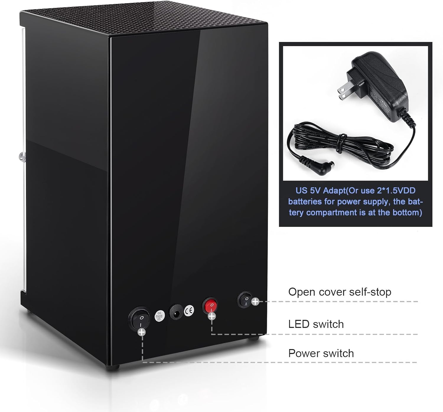 - 【إيقاف تلقائي عند فتح الغطاء】تتوقف لفافات الساعات عن الدوران تلقائيًا عند فتح الغطاء. ملاحظة: لتشغيل/إيقاف تشغيل هذه الوظيفة، تحتاج إلى الضغط على المفتاح الموجود في الخلف للتحكم. يسهل التصميم المبتكر عليك اختيار الساعة ووضعها.