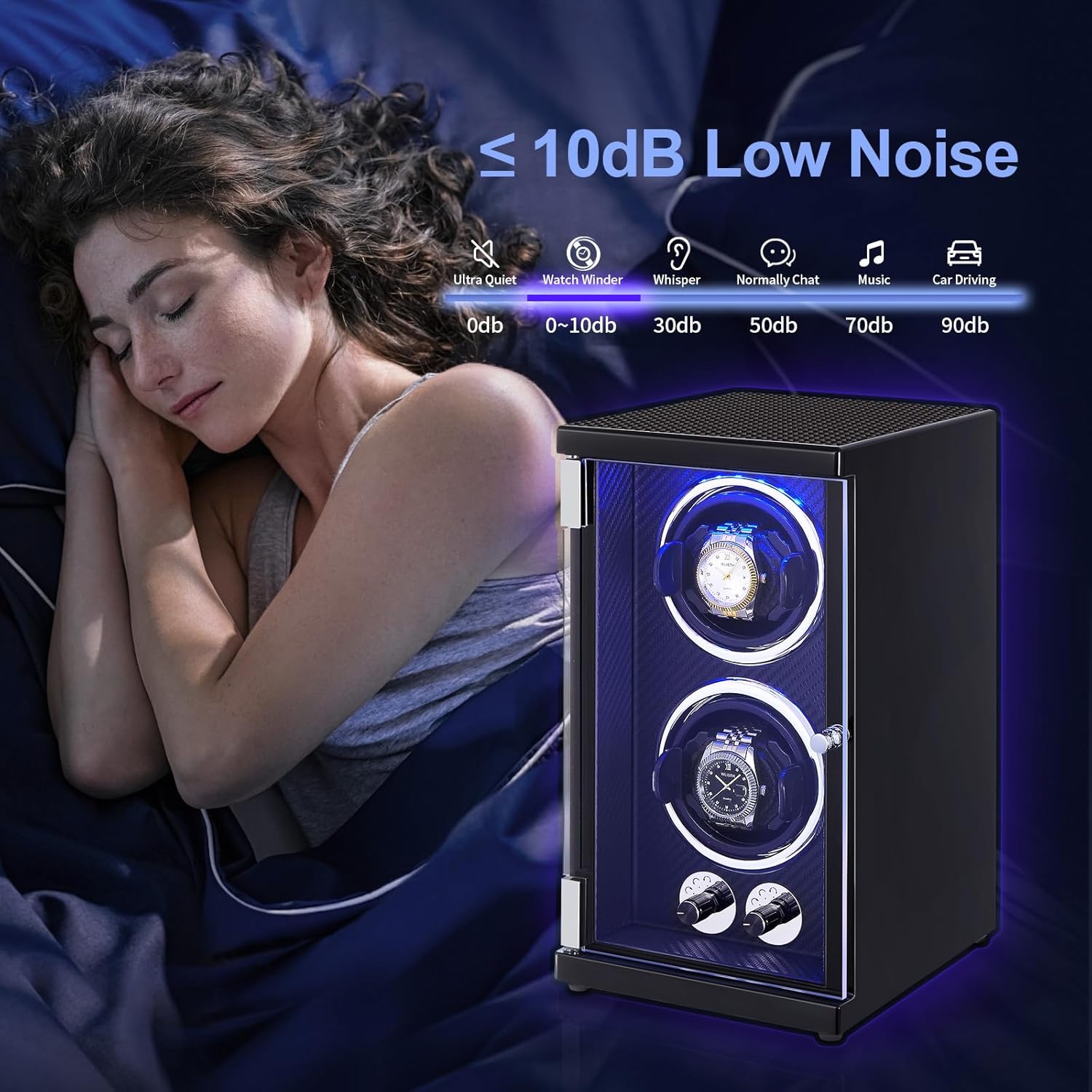 - 【لفاف ساعة صامت】يتم تشغيل لفاف الساعة الأوتوماتيكي بواسطة محرك ياباني فائق الصمت، مع ضوضاء منخفضة تصل إلى 5 ديسيبل لتدوير ساعاتك بهدوء، دون ضوضاء تشغيل.