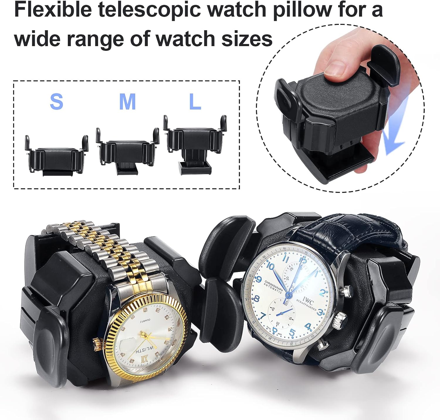 - 【وسادة ساعة مرنة قابلة للتمدد】صندوق لف الساعات مصمم للساعات ذات الأحجام المتعددة، هيكل مستقر. يعمل تصميم الزاوية الرأسية على تعظيم الطاقة الحركية الدورانية لملف لف الساعات المصنوع من خشب الجوز، مما يسمح بلف الساعة بكفاءة أكبر، وهو مناسب لمعظم الساعات الميكانيكية الأوتوماتيكية.