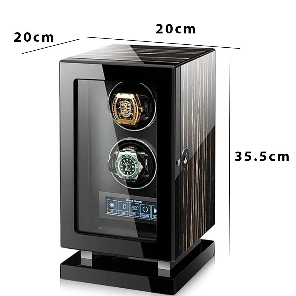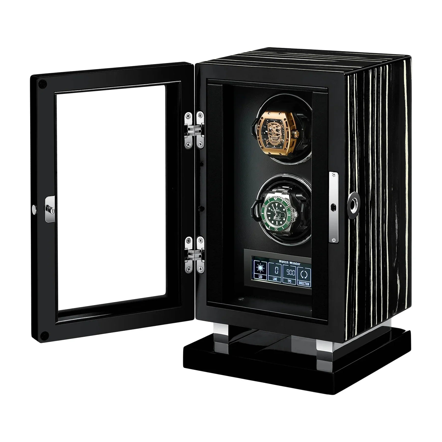 دلل ساعة مراقبتك في أحضان فاخرة من خلال جهاز لف الساعات الذكية Premium 2 الخاصة بنا، والذي يعمل بمحركات ألمانية ومزين بساعة من خشب الأبنوس زيبرانو - تحفة تحافظ على دقة الساعات بدقة ودقة.