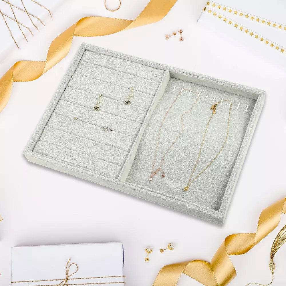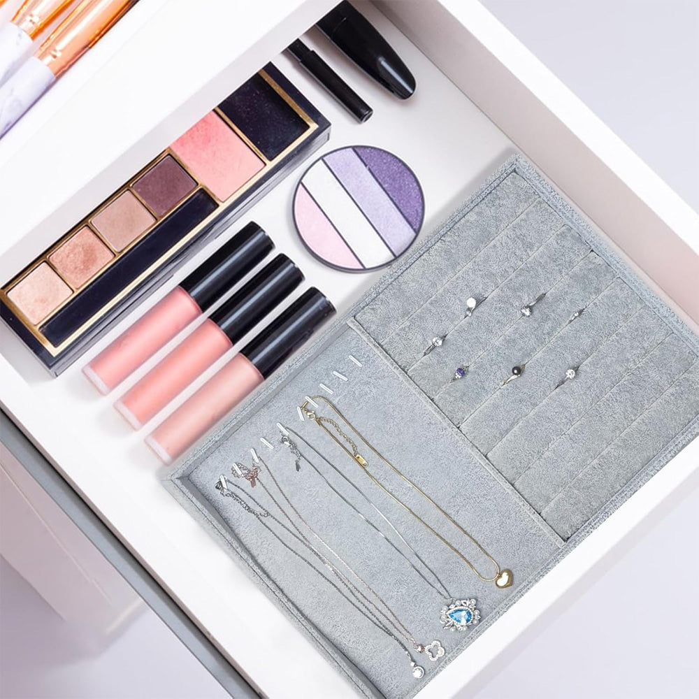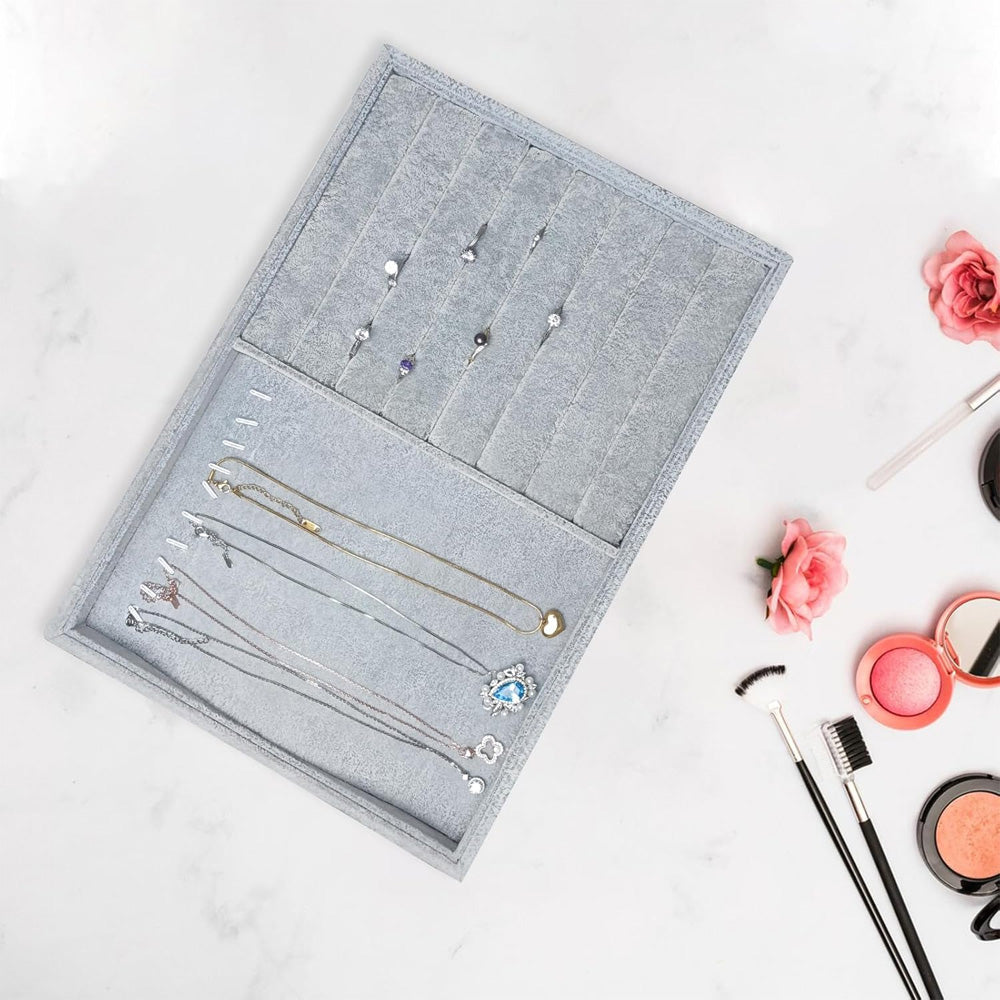 صلصة مخملية معدنية تحتوي على 9 خطافات و8 شريط مخملي للخواتم والمجوهرات